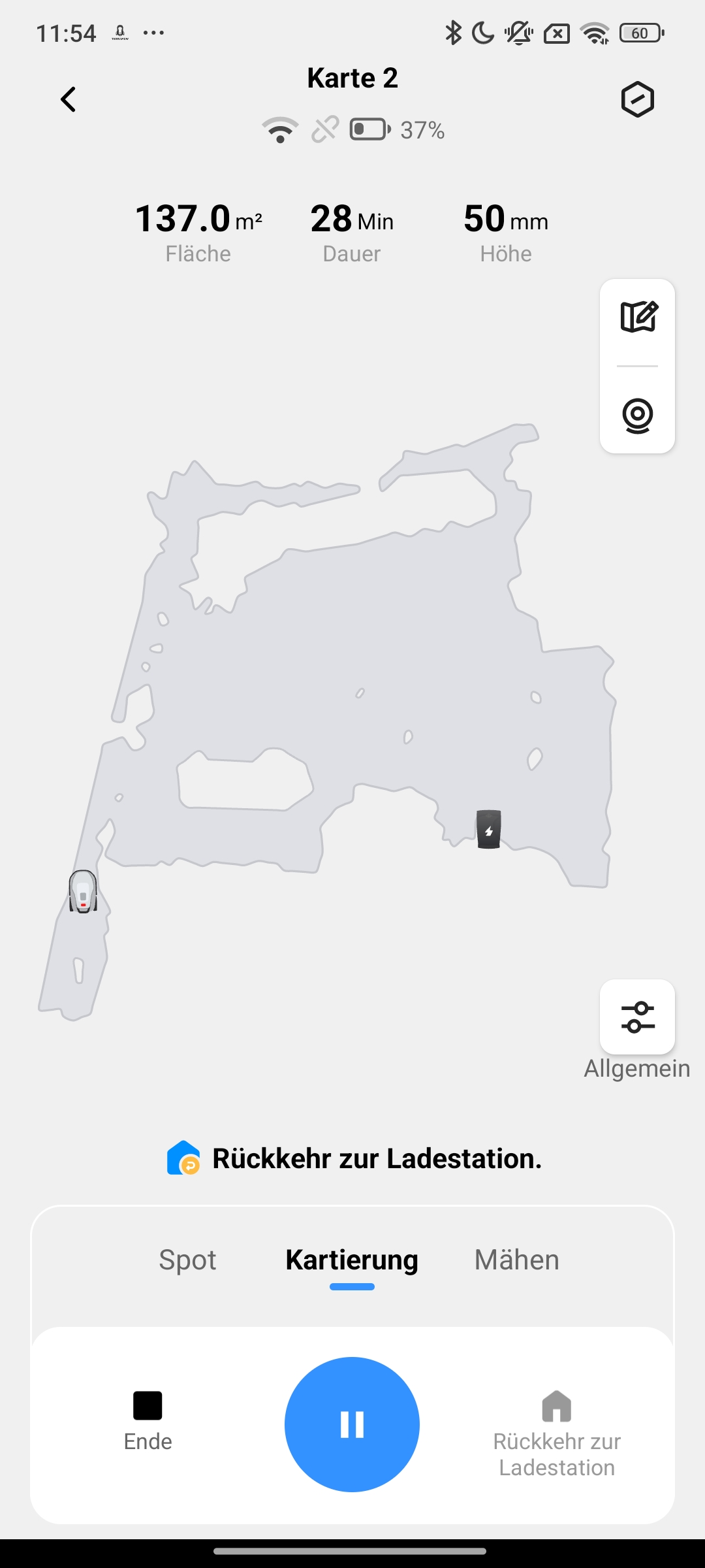 Auch wenn die Karte bei der ersten Kartierung noch nicht alle Engstellen umfasst, ist das kein Problem. Der V1000 aktualisiert bei jedem Mähvorgang im Modus „Auto“ oder „Zone“ die Karte nach den aktuellen Begebenheiten. Somit werden Engstellen nach einigen Mähvorgängen doch noch in die Karte aufgenommen.