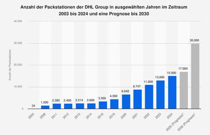 15.000 Packstationen waren es 2024, in den kommenden fünf Jahren will die DHL-Gruppe die Anzahl ihrer Packstationen verdoppeln.