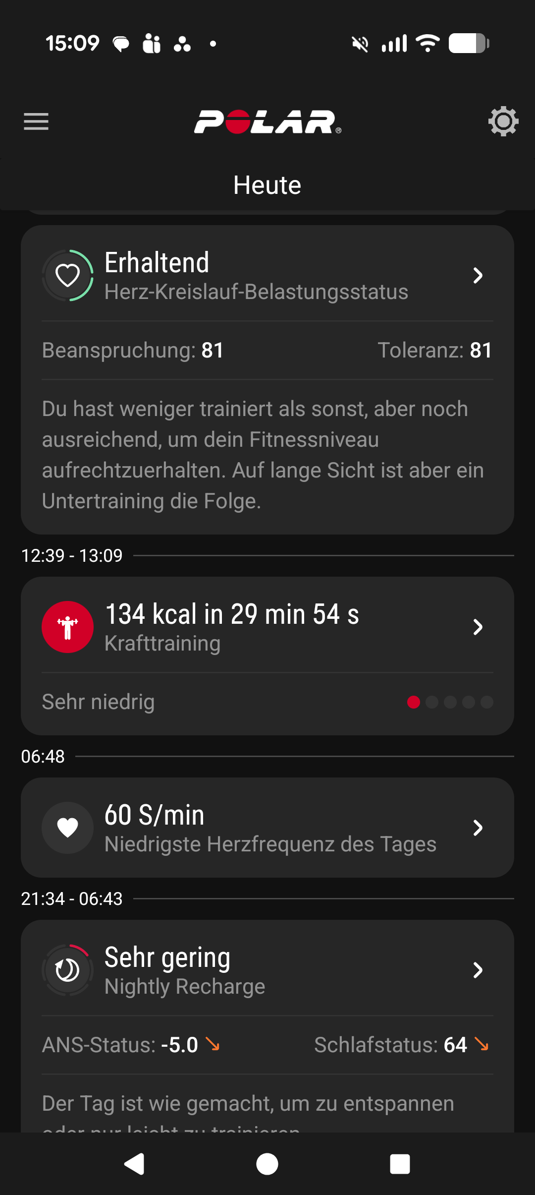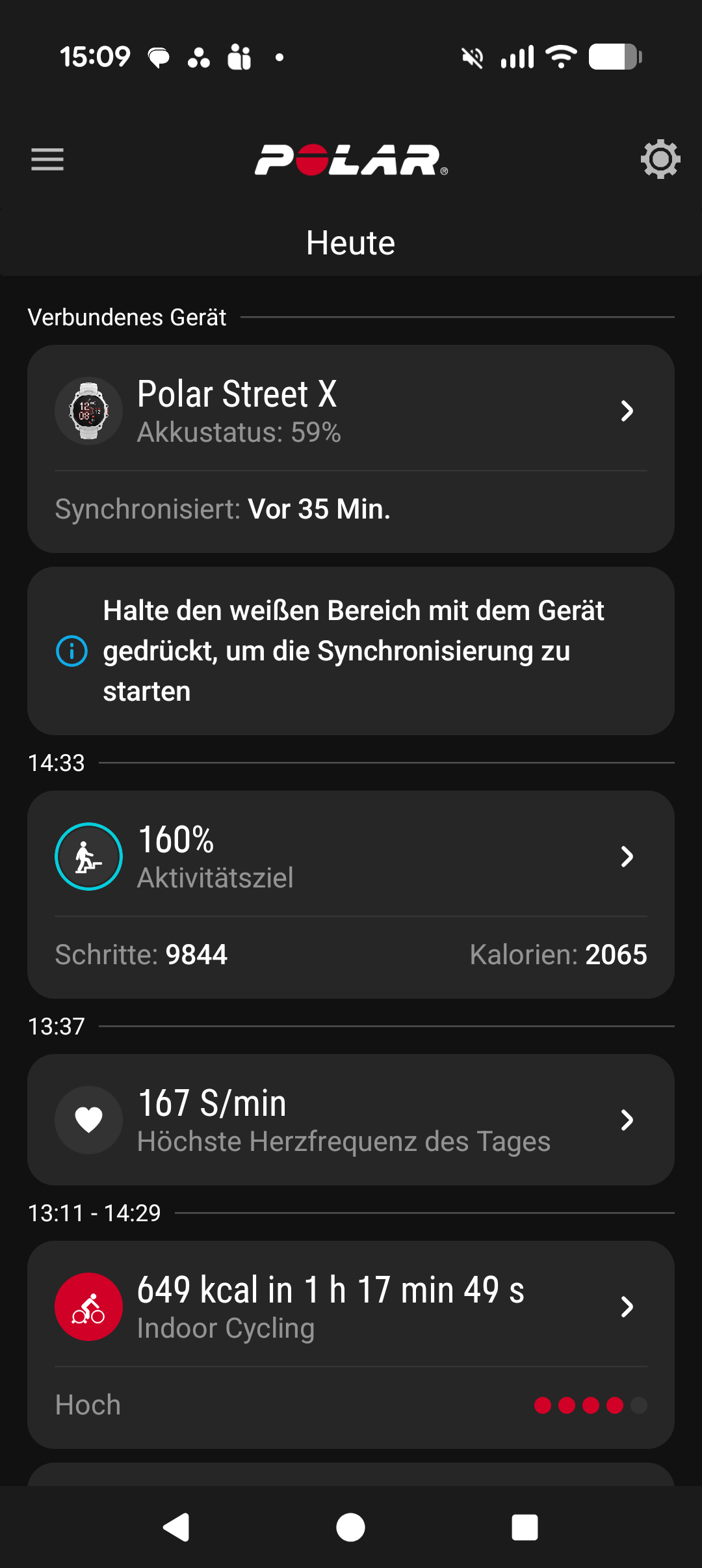 Die Startseite besteht aus einer Art von Tagebuch, das untereinander aktuelle Daten und Aktivitäten auflistet. Über das Kontextmenü können wir dann separate Detailansichten für Aktivität, Schlaf, Training und mehr aufrufen. Zudem können wir die App in den Einstellungen mit anderen Diensten wie Strava, Komoot, TrainingPeaks und MyFitnessPal verbinden.