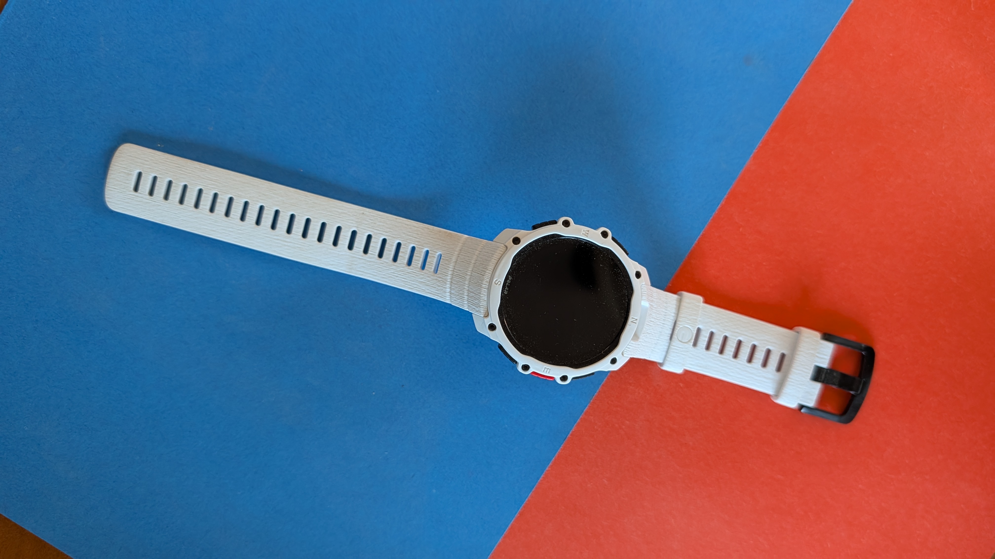 Erhältlich ist die Street X in drei Farben: Schwarz, Weiß und Oliv. Alle Modelle kommen mit einem Silikonarmband, ein längeres Wechselarmband liegt bei. Das Armband macht einen robusten Eindruck, allerdings hat die aufgeraute Oberfläche bei der weißen Variante einen Nachteil: Schmutz bleibt in der feinen Maserung leicht hängen, sodass man das Armband häufiger reinigen muss, wenn man die Uhr wechselnden Umgebungsbedingungen aussetzt.