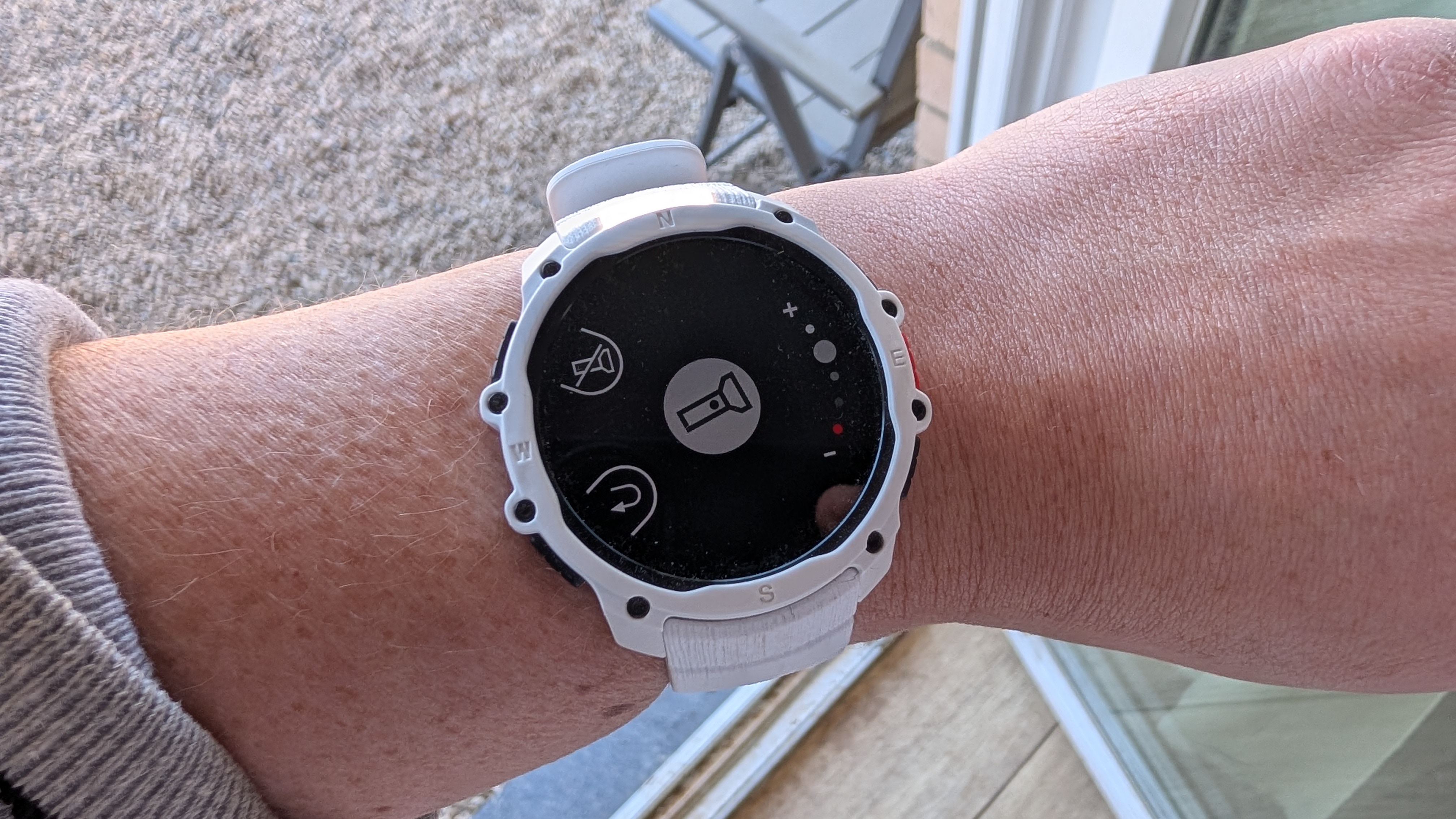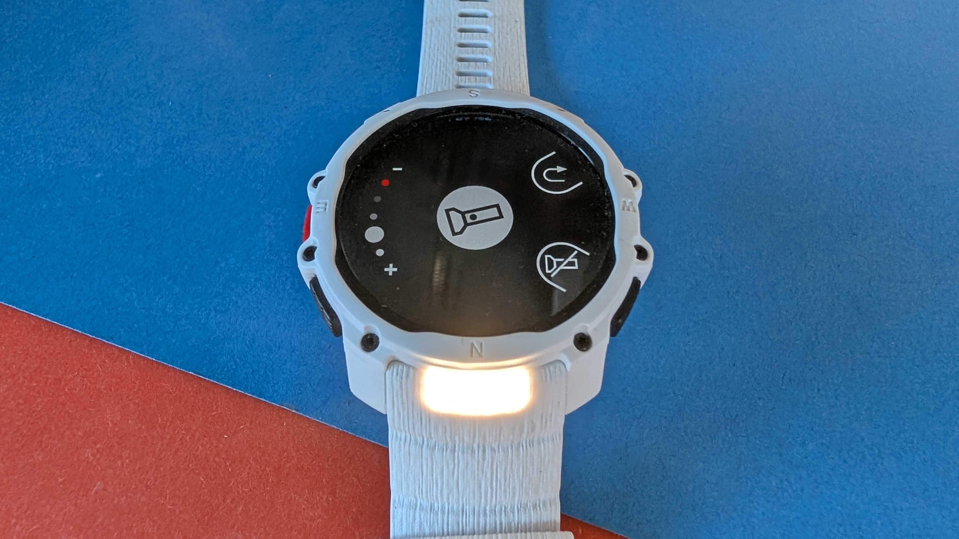 Intensität und Lichtfarbe lassen sich über das Taschenlampen-Menü steuern, das Ein- und Ausschalten funktioniert aber auch außerhalb des Menüs über die separate Taste. Damit lässt sich die Lampe flexibel beim Training oder bei anderen Aktivitäten nutzen, ohne dass das Menü dauerhaft geöffnet bleiben muss. Praktisch: Einmal vorgenommene Helligkeitseinstellungen bleiben erhalten, eine erneute Konfiguration entfällt bei jedem Einschalten. Insgesamt wirkt die Taschenlampe wie ein durchdachtes Feature und erweist sich im Test als nützliches Extra.