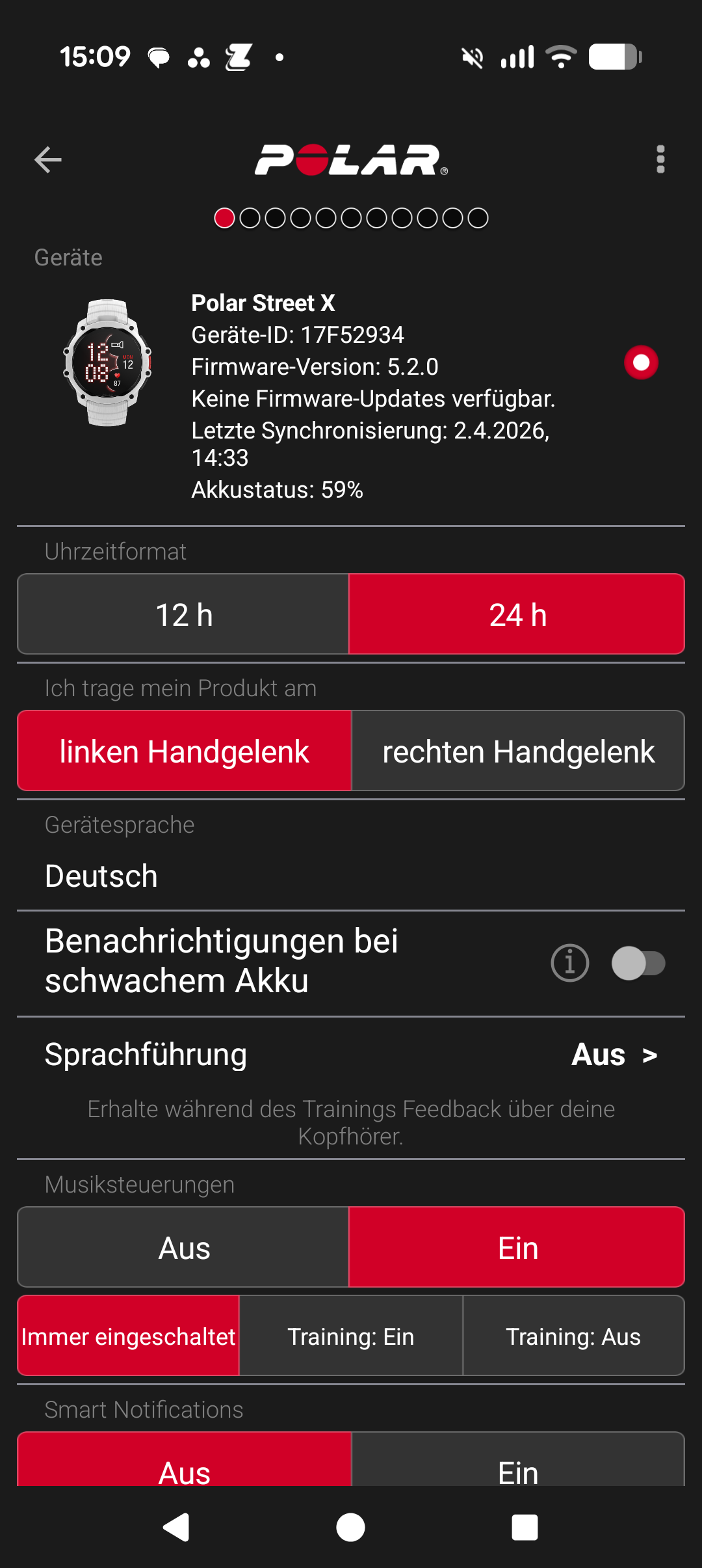 Wo hingegen noch Luft nach oben bleibt, sind die bestenfalls im Mittelfeld anzusiedelnde Akkulaufzeit und die sparsame Auswahl an smarten Features. Beides ist unserer Meinung nach aber wegen des guten Preis-Leistungs-Verhältnisses der Street X verschmerzbar.
