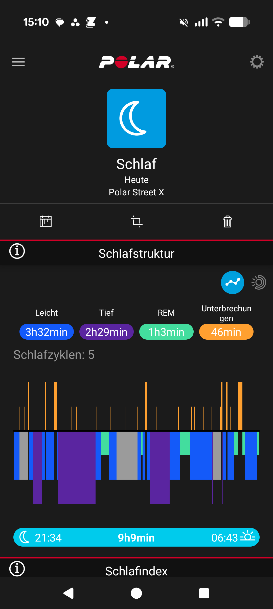 Ein Blick auf die Features zum Schlaf- und Gesundheits-Tracking der Street X zeigt: Polar hält sich hier an das Konzept, das sich bereits bei anderen Uhren des Herstellers bewährt hat. Die Street X misst unsere Herzfrequenz, Hauttemperatur sowie unsere Schlafphasen. Einen Sensor für die Blutsauerstoffsättigung gibt es nicht. Basierend auf den gemessenen Daten erstellt die Polar-Flow-App einen Schlafindex, der auf einer Skala von 1 bis 100 unsere Schlafqualität basierend auf Menge, Stabilität und Regeneration bewertet.