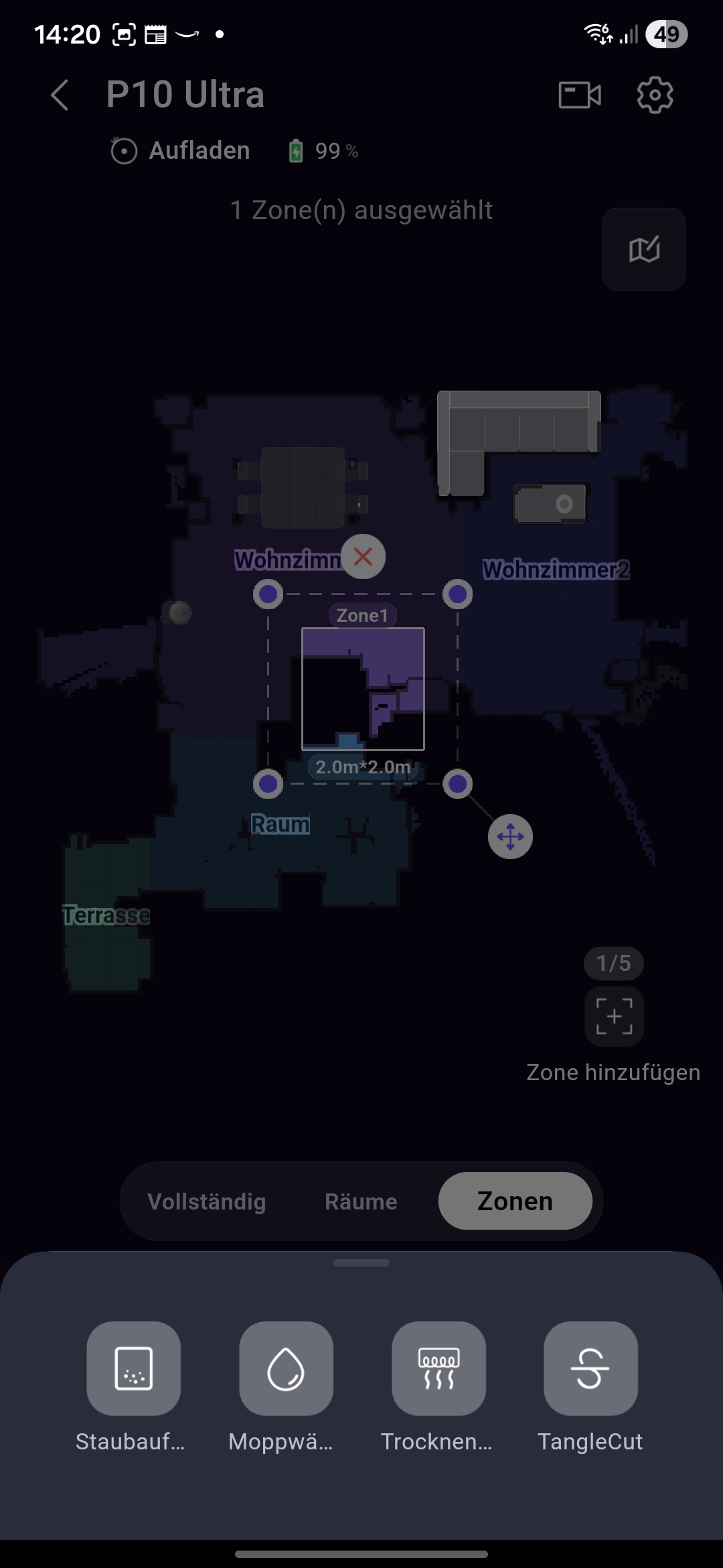 Die App selbst unterstützt Speicherung mehrerer Karten für unterschiedliche Etagen, automatische und manuelle Raumaufteilung, Sperrzonen, Zeitpläne und einige weitere Features, die auch bei der Konkurrenz zu finden sind. Dazu gehören etwa Einstellungen für Saugleistung und Wasserabgabe, die Reinigungsreihenfolge, besondere Aufmerksamkeit bei Haustieren und einiges mehr. Damit bietet die Software kaum weniger Möglichkeiten als bei der Konkurrenz.