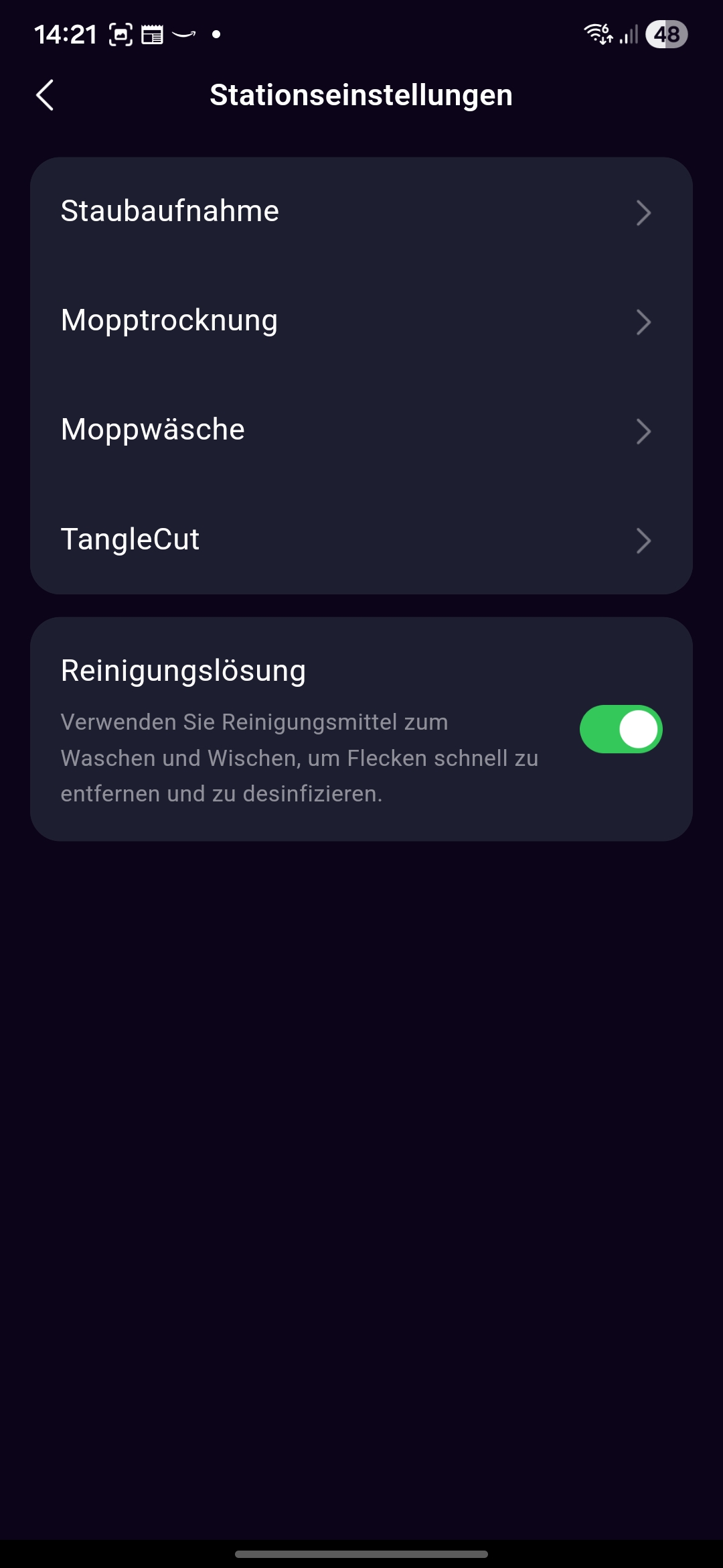 Die Station verrichtet ihre Arbeit ebenfalls sehr gut. Sie wäscht die Mopps mit 60 °C heißem Wasser und trocknet sie anschließend mit warmer Luft. Der Hersteller nennt für die Trocknung typischerweise etwa 3 Stunden, der Nutzer darf das aber in der App auf 2, 3 oder 4 Stunden anpassen.