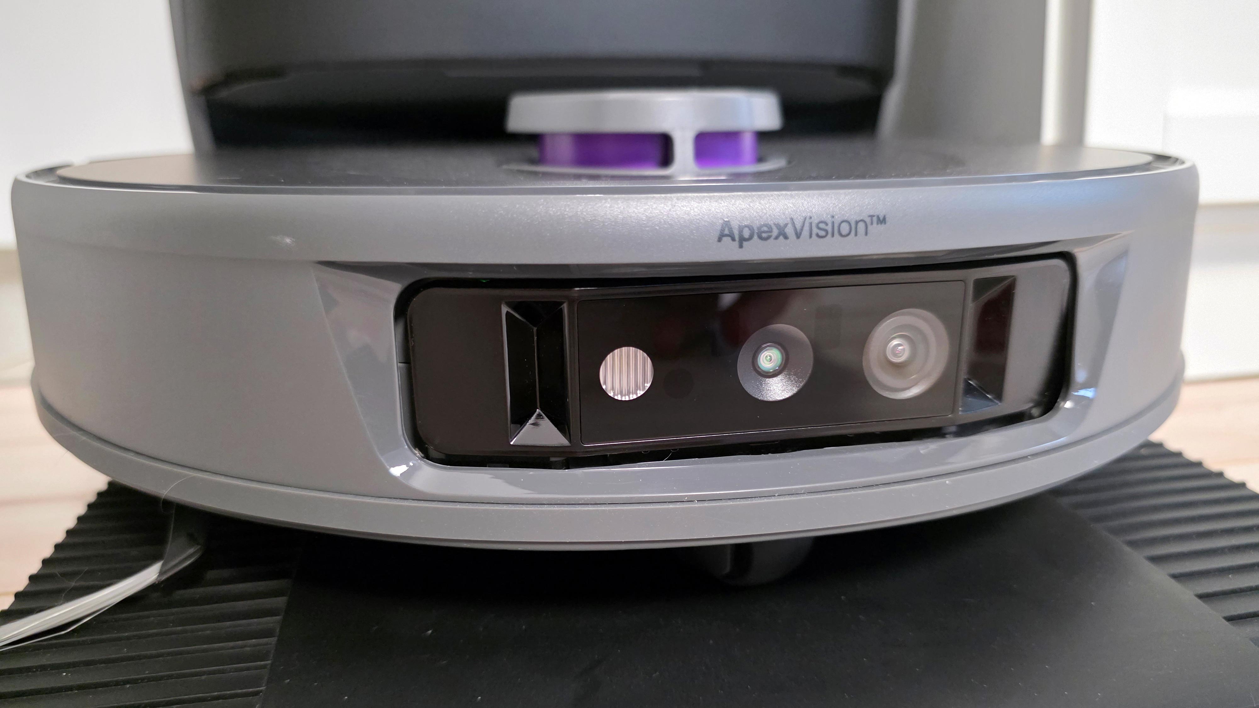 Auf der Vorderseite sind im Bumper einige Sensoren, das Strukturlicht und eine Kamera zur Objekterkennung integriert. Mit der Bildgebung erstellt der Roboter außerdem Fotos von Haustieren oder erkannten Störquellen wie Absätzen oder Kabeln.
