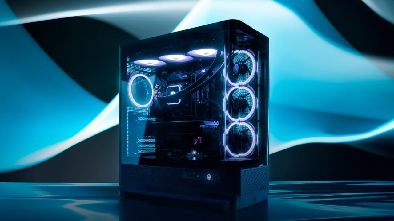 Im Aufbau folgt das Gehäuse an sich gängigen Konventionen. Einzige Ausnahme: Das I/O-Panel wird an die Seite gesetzt. Das bietet die Möglichkeit, auch das Seitenteil frontal zum Betrachter hin auszurichten, die Formgebung des Towers unterstützt diesen auch in Produktbildern herausgestellten Ansatz.
