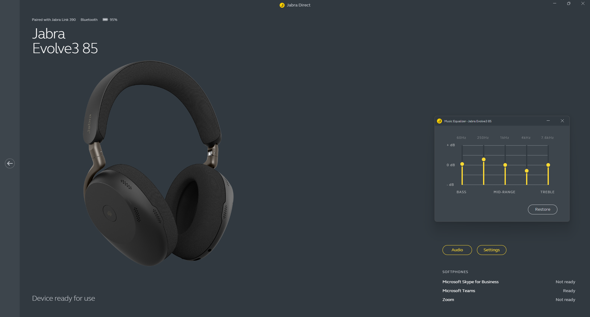 Im Arbeitskontext kommt es beim Klang vor allem darauf an, dass man das Gegenüber im Voice-Call oder Teams-Meeting problemlos verstehen kann. Während das mit allen Headsets möglich ist, die wir im Rahmen dieser Bestenliste getestet haben, sticht besonders unser Technologiesieger, das Jabra Evolve 3 85, mit seinem erstaunlich guten Sound hervor. Er überzeugt sogar beim Musikhören und Videoschauen durchweg und kann dank Equalizer per App weiter angepasst werden.