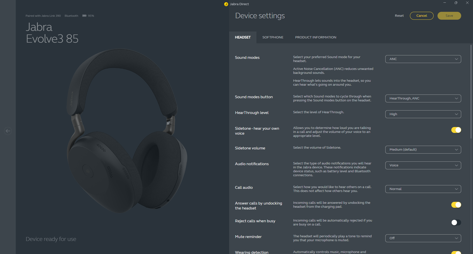 Hearthrough ist vor allem bei Over-Ear-Kopfhörern nützlich, da man deutlich besser die Außengeräusche wahrnimmt. So kann man sich mit Kollegen unterhalten, ohne das Headset abnehmen zu müssen. Sidetone spielt hingegen die eigene Stimme beim Sprechen über die Kopfhörer ab, wodurch man ein besseres Gefühl für die eigene Lautstärke bekommt.