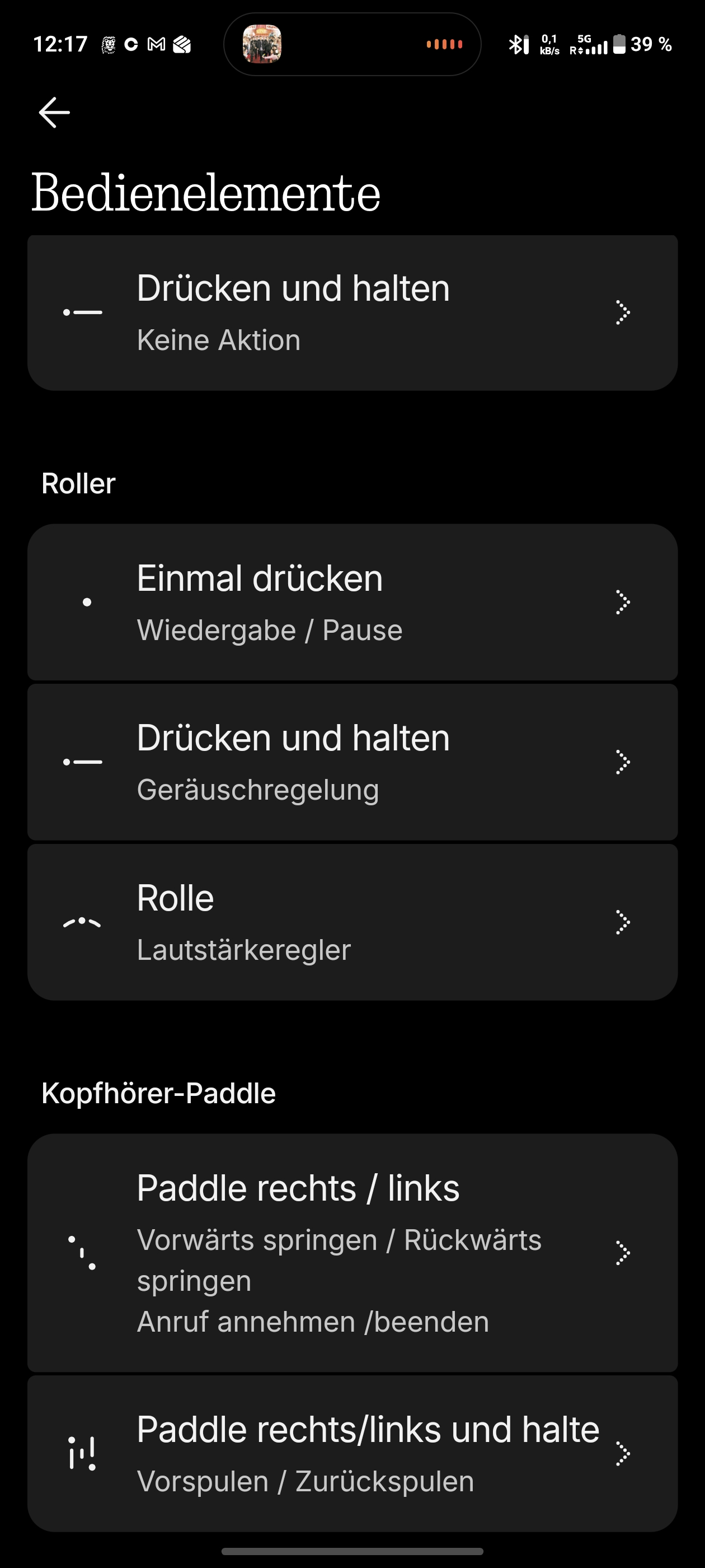 Nothing übernimmt das hervorragende Bedienkonzept des Headphone 1 – und das ist eine der besten Entscheidungen, die der Hersteller treffen konnte. Der Roller regelt Lautstärke, startet und pausiert die Wiedergabe und wechselt den ANC-Modus. Das Paddle springt zwischen Tracks und spult bei längerem Halten vor oder zurück. Ein separater Button ruft den Sprachassistenten auf oder lässt sich benutzerdefiniert belegen.