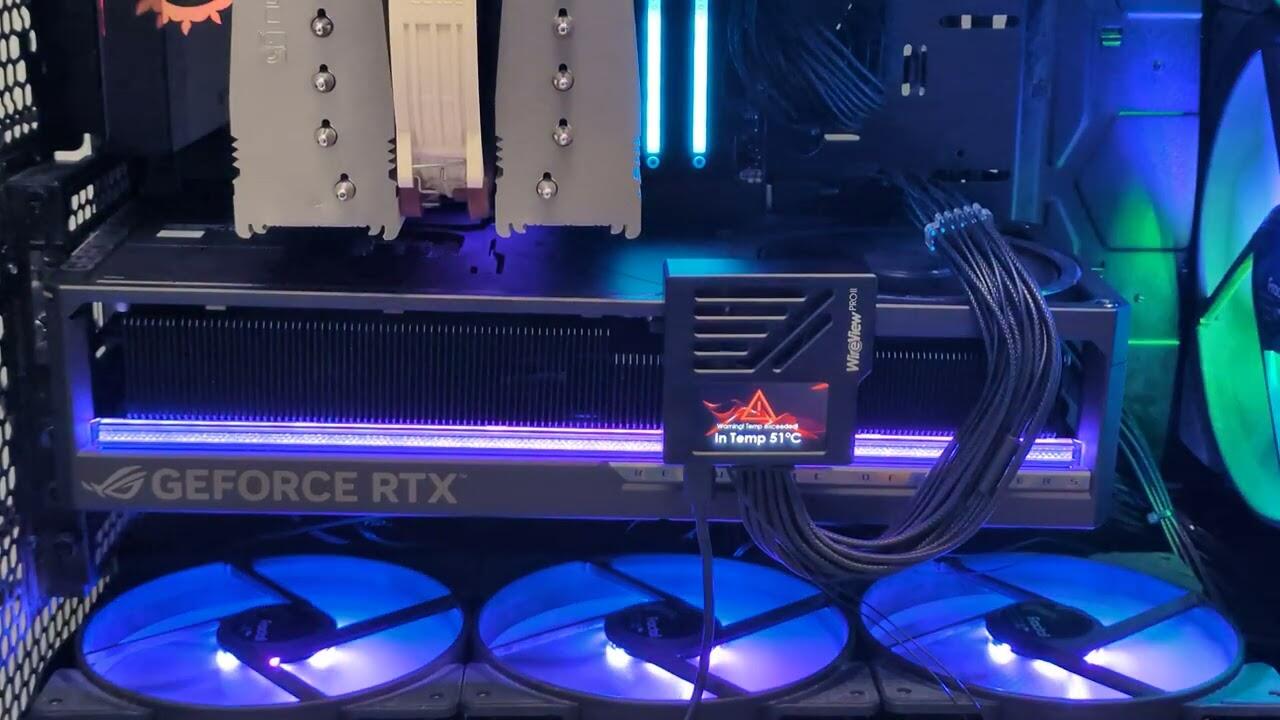 Im Praxiseinsatz zeigt sich das WireView Pro II von seiner einfachen Seite. Einfach das Netzteilkabel mit dem Gerät verbinden, dann das WireView Pro II auf die Grafikkarte setzen, fertig.