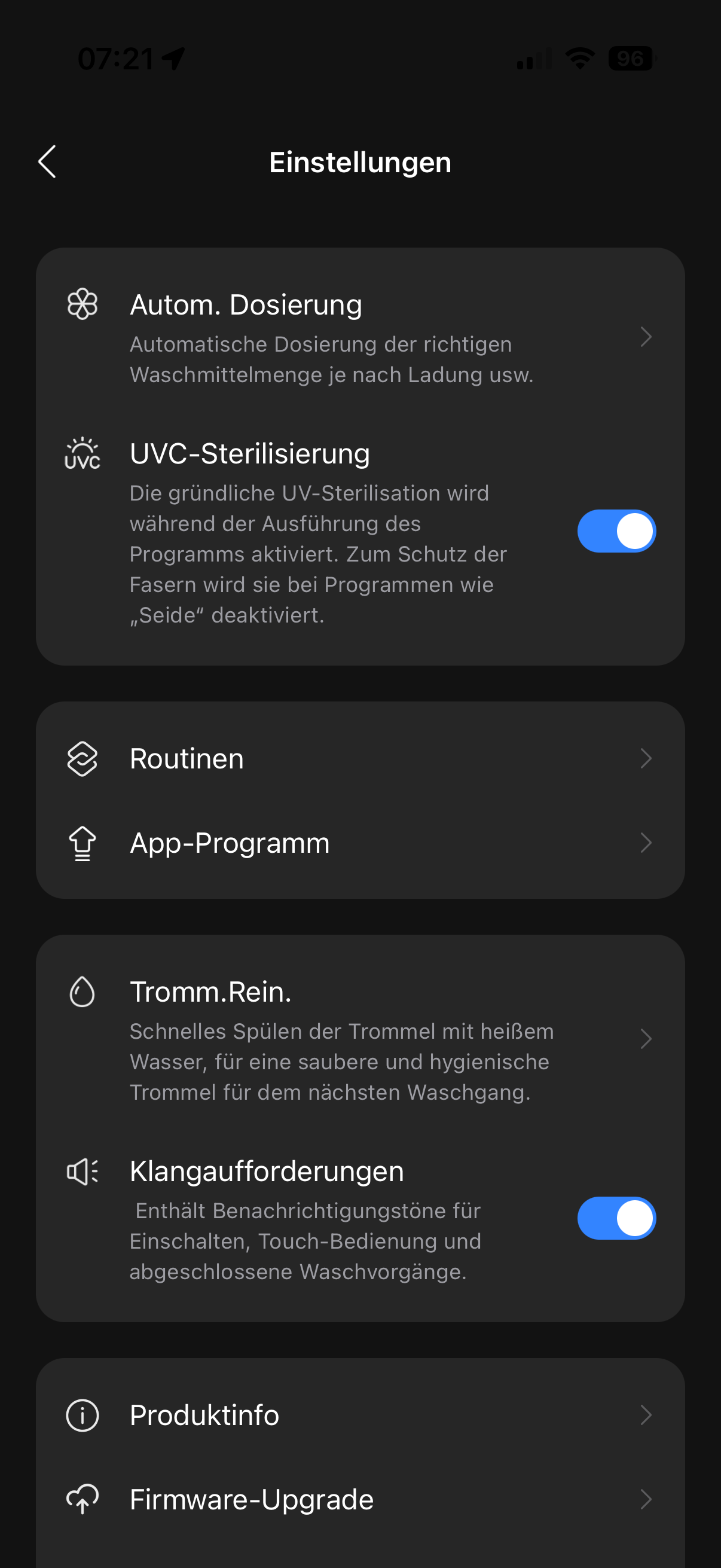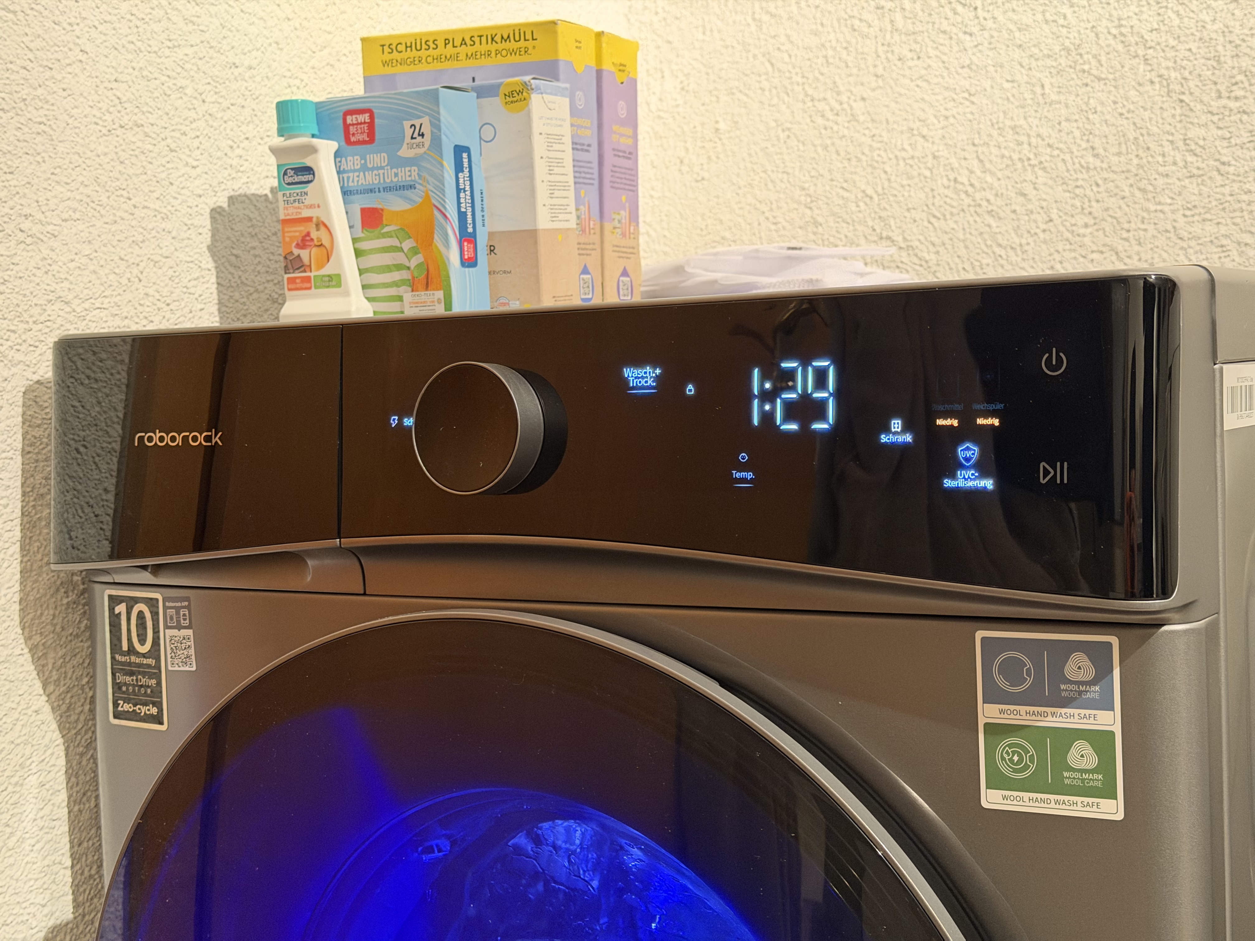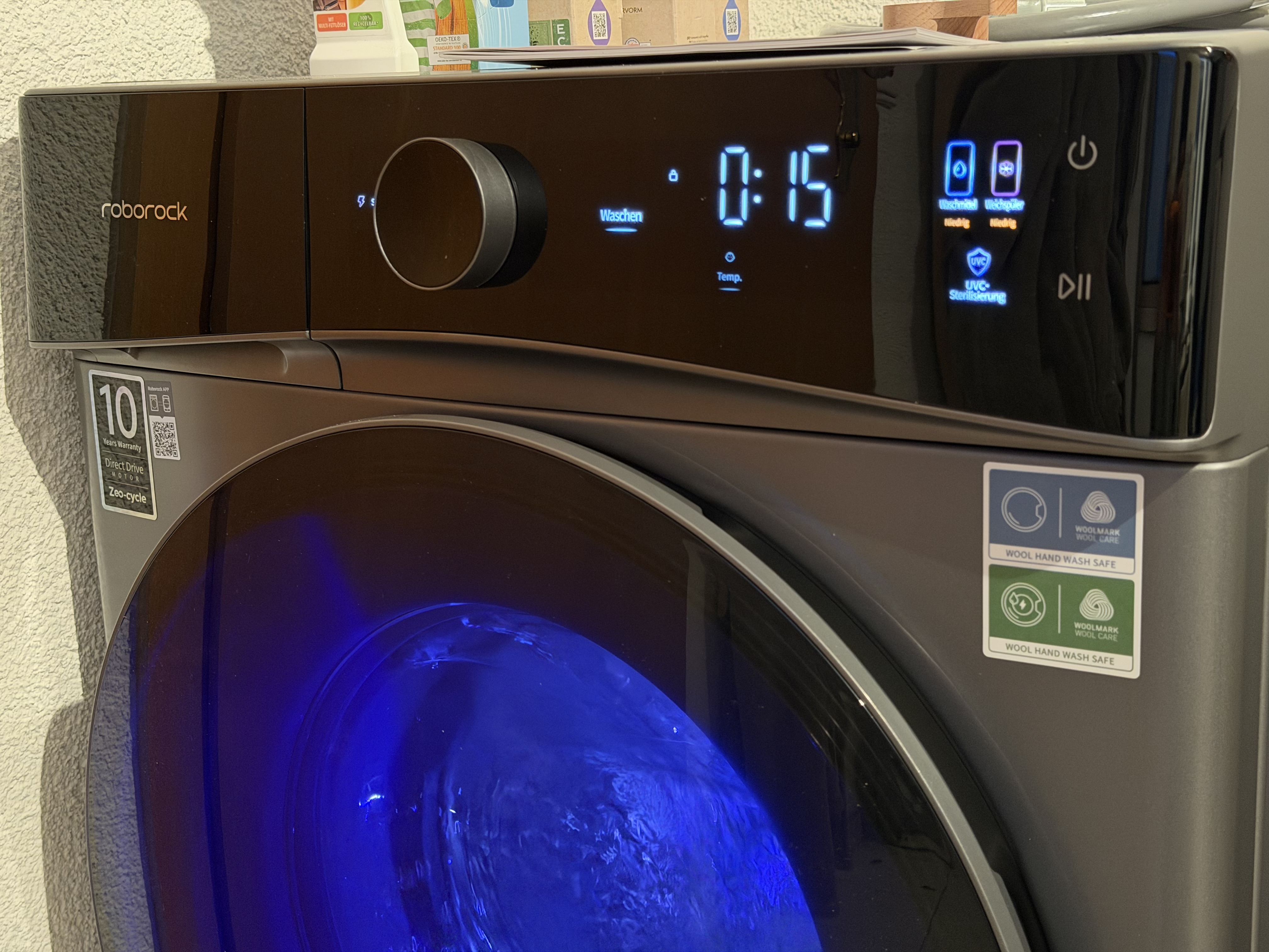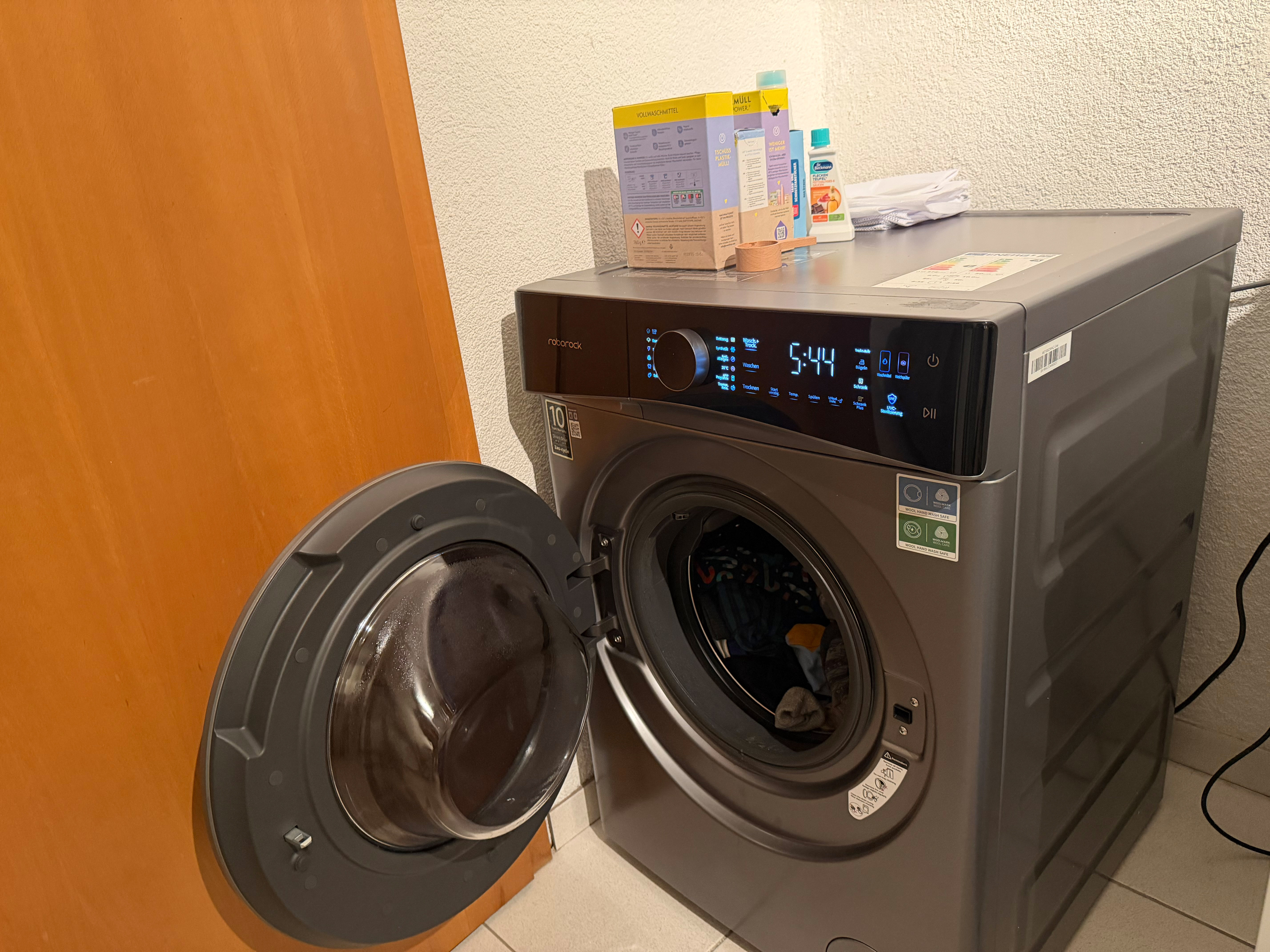 Die Roborock-App ist dieselbe wie bei den Saug- und Wischrobotern des Herstellers – übersichtlich gestaltet, stabil in der Verbindung und mit sinnvollen Komfortfunktionen ausgestattet. Sie informiert über Programmfortschritte, Restlaufzeit und Wartungshinweise, erlaubt Anpassungen von Temperatur, Schleuderdrehzahl und Spülgängen und sendet Benachrichtigungen, wenn der Waschgang abgeschlossen ist.