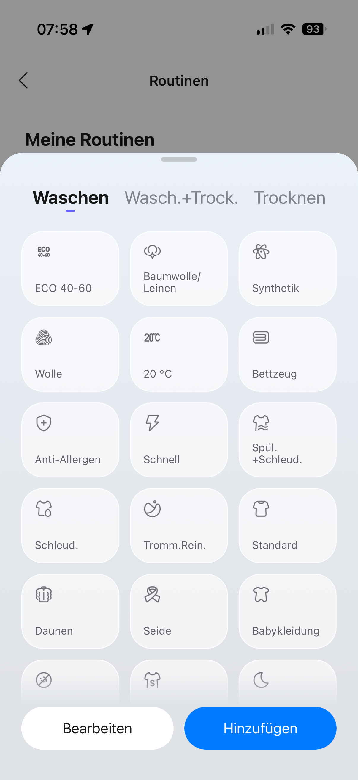 Waschen + Trocknen („Schranktrocken“):