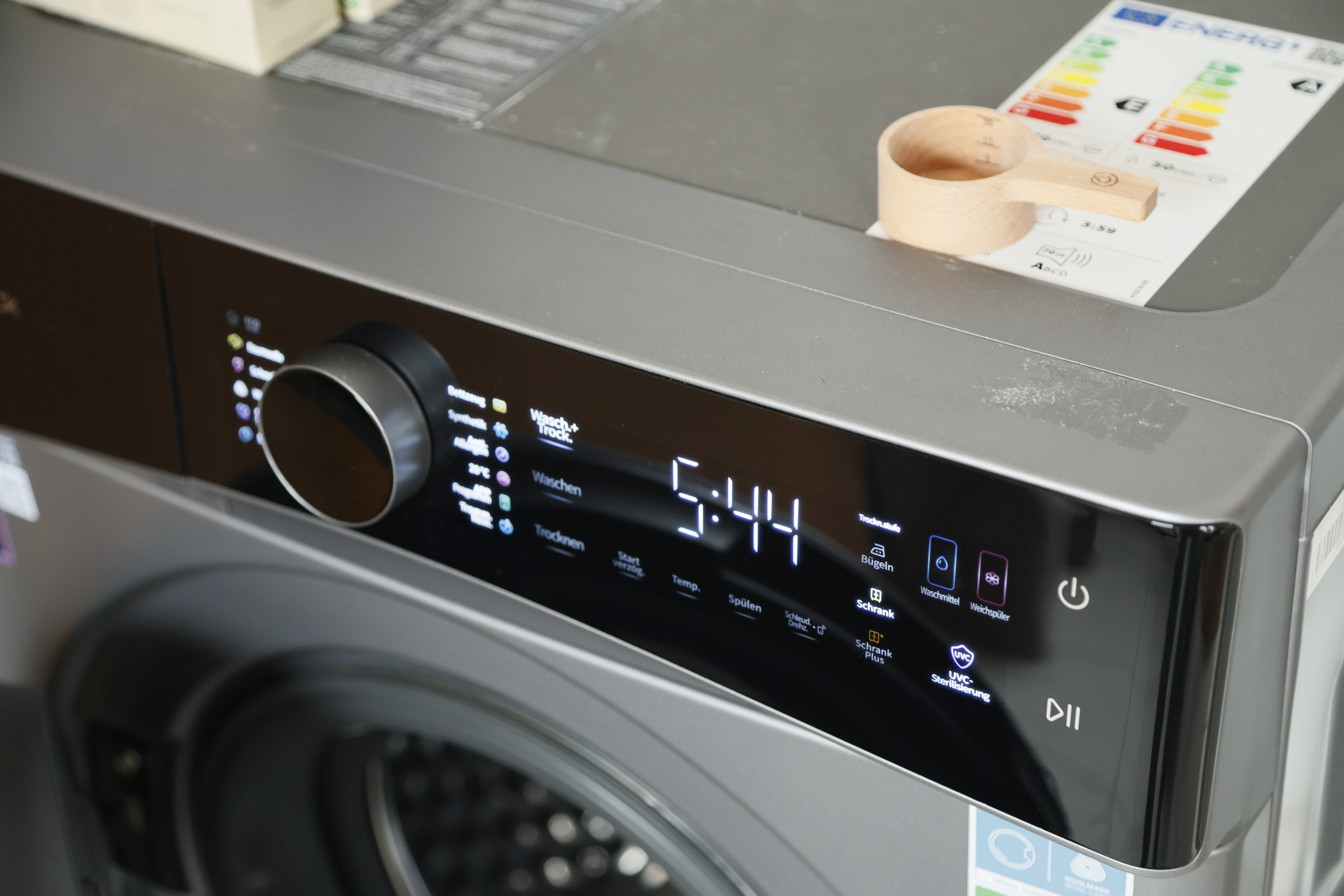 Im Programm Synthetik/Wolle lag der Energieverbrauch zwischen 300 und 500 Watt bei einer Programmdauer von rund 45 Minuten – für ein Kombigerät ein ausgezeichneter Wert.