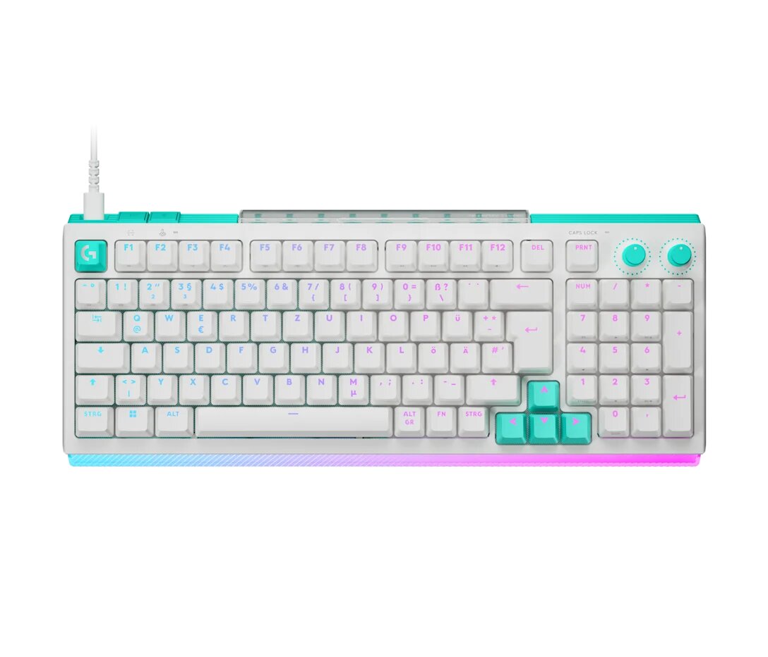 Wer jetzt an austauschbare Elemente oder einen Nummernblock bis hin zu verschiedenem Zubehör denkt, liegt falsch. Angeboten wird die G512 X im 75%- und 98%-Layout, dessen auffälligste Neuerung gleich zwei programmierbare Drehregler sind. Dazu kommt eine Lichtleiste an der Front, die in die separat erhältliche, transparente Handballenauflage leuchtet.