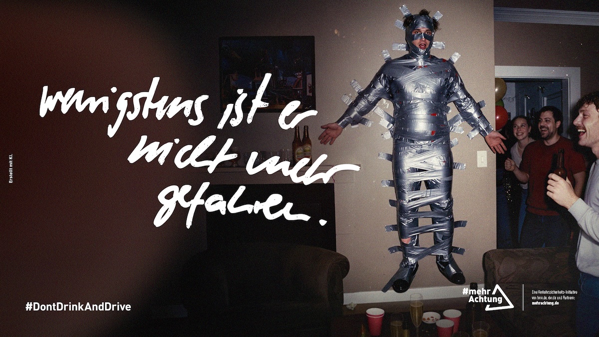 Und von Scholz & Friends selbst heißt es, dass »der Humor dabei nicht der Verharmlosung dient, sondern als bewusster Perspektivwechsel: Egal wie dumm die abgebildete Situation an sich auch scheint – die entscheidende, lebensrettende Entscheidung war, nicht mehr selbst zu fahren«.