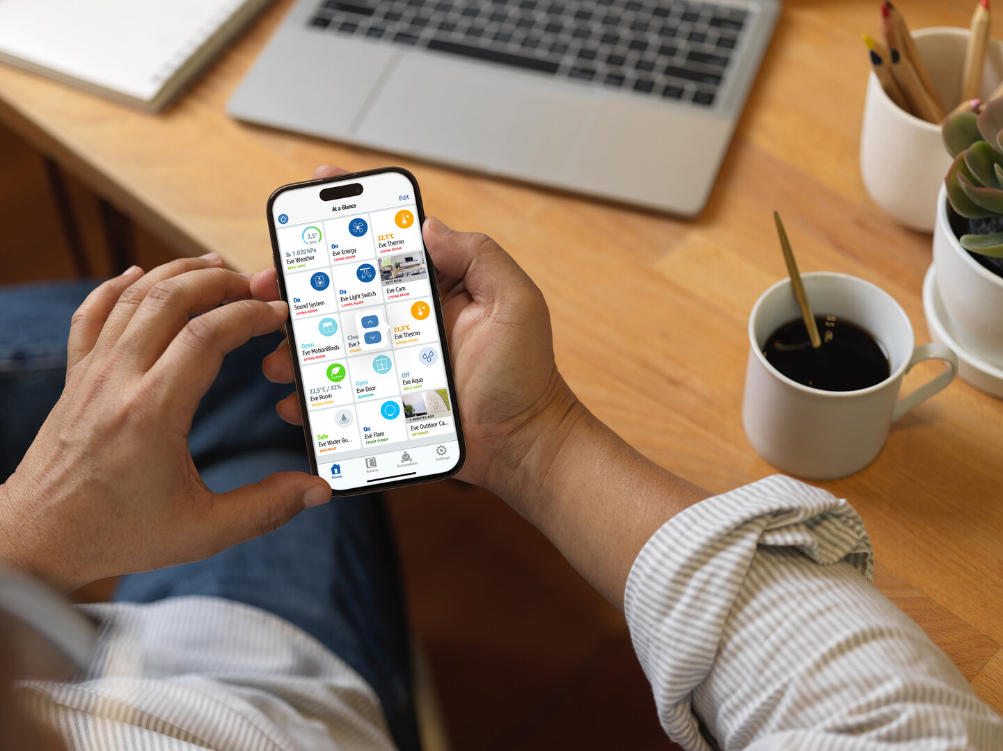 Die im Apple App Store und im Google Play Store kostenlos erhältliche Eve-App bietet Komfortfunktionen wie autonom auf dem jeweiligen Gerät laufende Zeitpläne für Werktage und freie Tage, wobei Wohlfühl- und Absenk- sowie zusätzliche und für jeden Raum spezifische Temperaturen konfigurierbar sind. Auch Temperaturabweichungen zwischen Gerät und Raummitte lassen sich in der Eve-App einstellen. Eve für Android unterstützt ausschließlich Eve-Geräte, die über die Google-Home-Plattform verbunden sind.