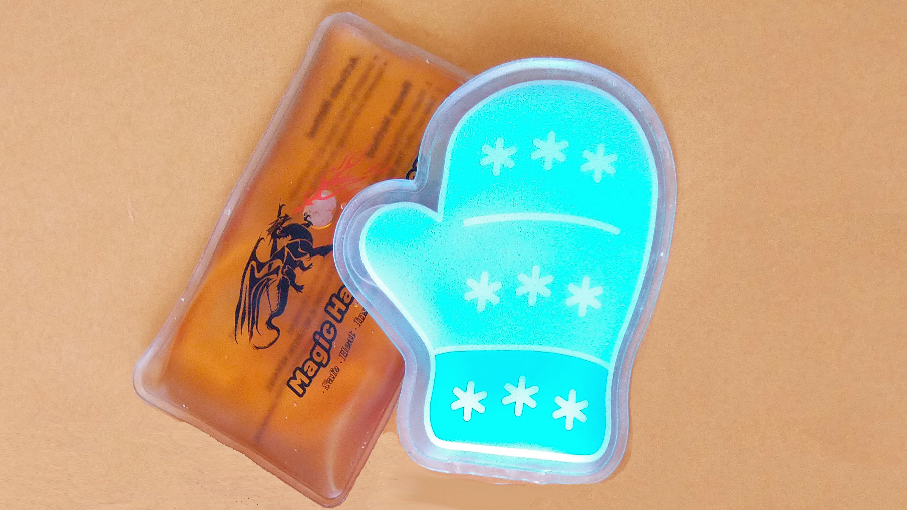 Ebenfalls empfehlenswert finden wir die bekannteren Handwärme-Pads oder Gel-Heizkissen, die es schon seit einigen Jahren gibt. Letztlich handelt es sich um weiche durchsichtige Beutel mit einem darin enthaltenen Feststoff, einem sogenannten Latentwärmespeicher. Legt man die Beutel in kochendes Wasser, beginnt der Inhalt (vornehmlich Natriumacetat-Trihydrat) zu schmelzen, bis nach einigen Minuten nur noch durchsichtiges Gel und ein rundes Stahlplättchen im Inneren zu sehen sind. Nach dem Abkühlen der Flüssigkeit ist das Wärme-Pad dann sofort einsatzbereit.