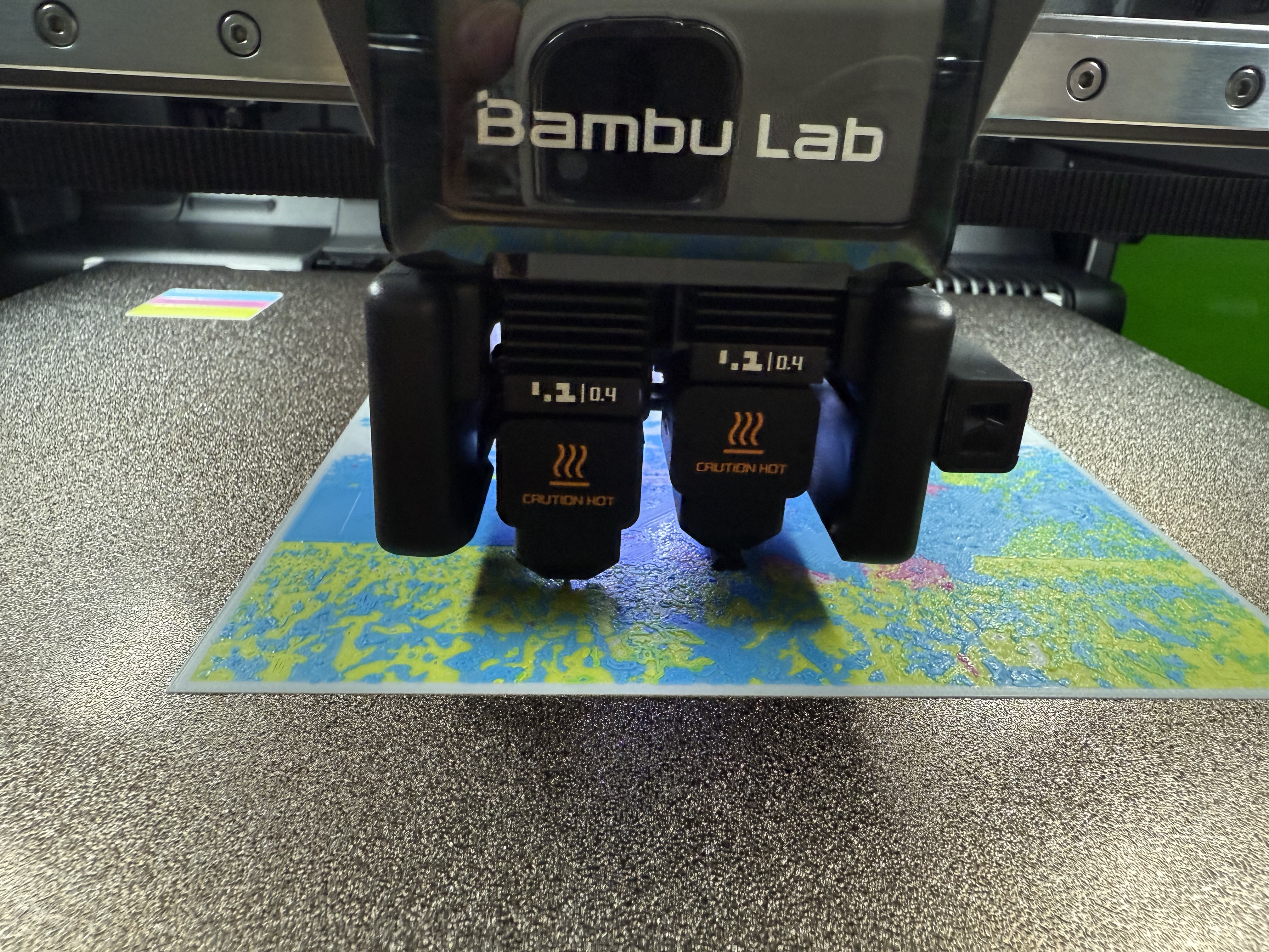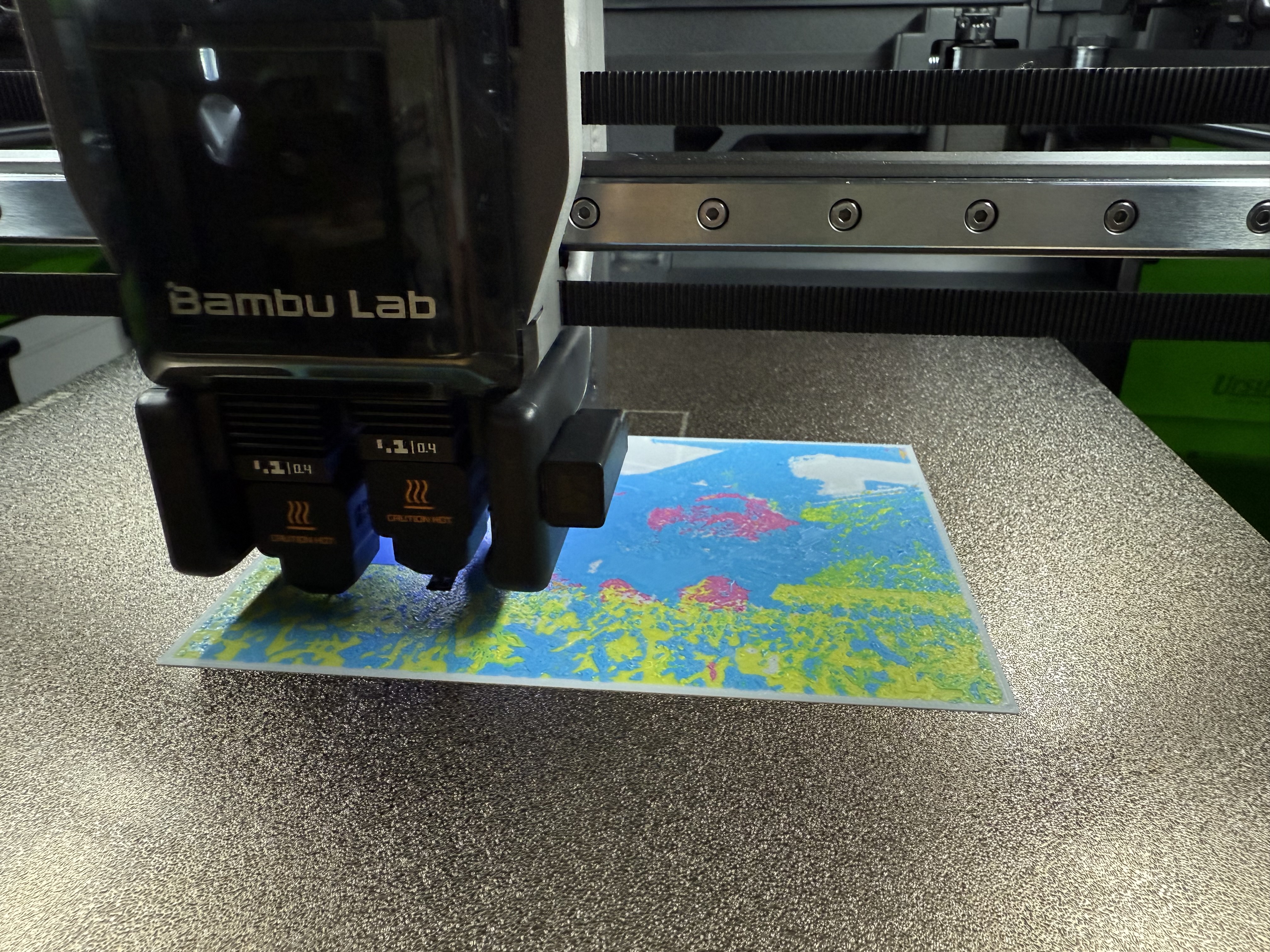Hier druckt der Bambu H2D ein CMYK-Bild. Wie beim Druck auf Papier werden die Farbpunkte hier nebeneinander gesetzt.