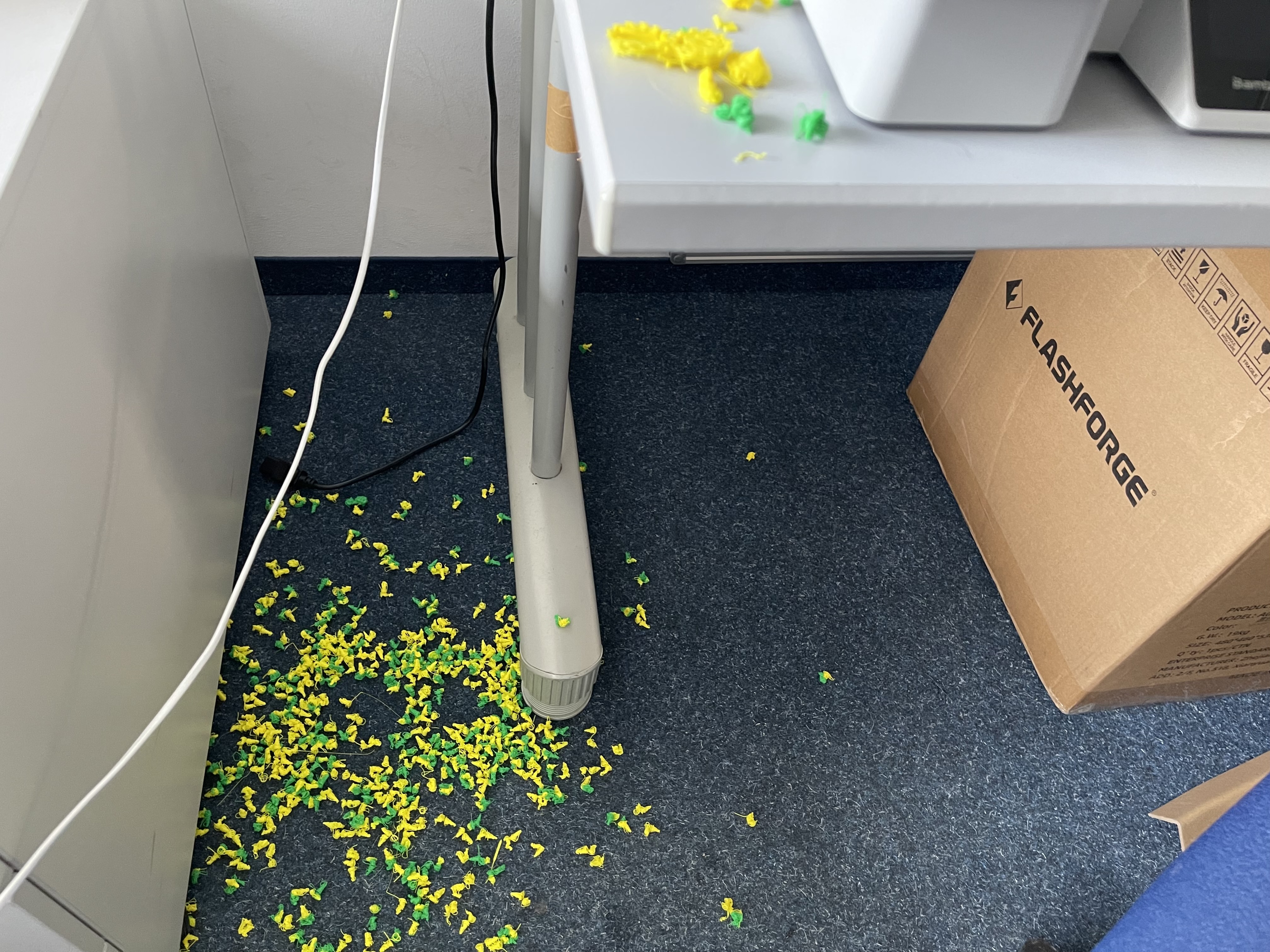 Die Nachteile waren erhöhter Filamentverbrauch, weil der Drucker die Mischfarbe beim Wechsel der Filamente an der Seite ausspült, sprich: wegwirft. Dazu kommen die Kosten des Geräts, das mit 599 Dollar damals teurer war als heute ein guter, anfängertauglicher 3D-Drucker samt Filamentwechselsystem.