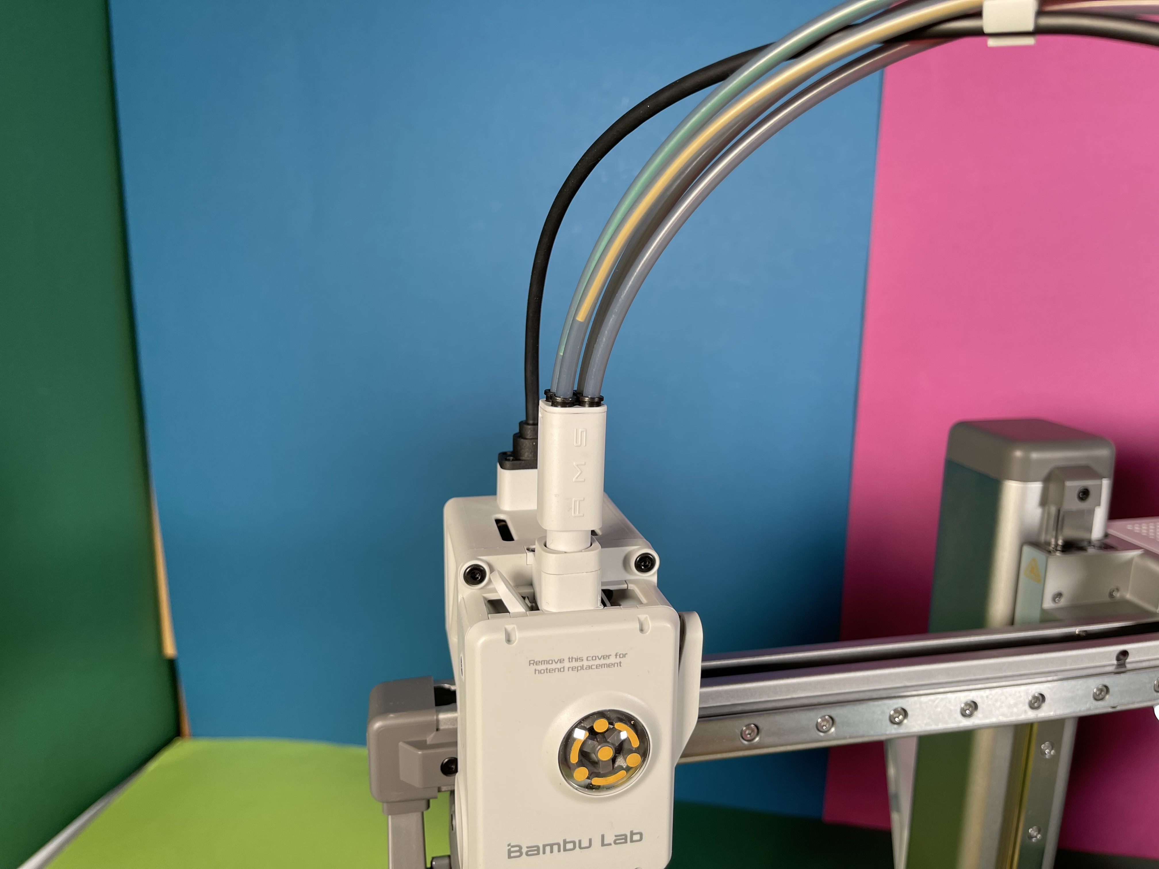 Das Prinzip ist ähnlich: Mehrere Filamentrollen – meist vier – sitzen in einem geschlossenen Kasten oder offenen System. Von dort führen PTFE-Schläuche zum Druckkopf, wo jeweils nur ein Filament aktiv ist. Eine Schneide-Mechanik im Feeder oder Materialwechsler – vornehmlich ein Messer – trennt das zuletzt verwendete Filament vor dem Hot-End ab. Der Wechsler zieht es zurück und schiebt das nächste vor. Übergangsreste der Mischfarbe werden als „Poop“ ausgetragen. Der günstigste (und gute) Einstieg in den mehrfarbigen Druck ist der Bambu Lab A1 Mini (Testbericht), den es mit Materialwechselsystem A1 Lite aktuell ab 300 Euro gibt.