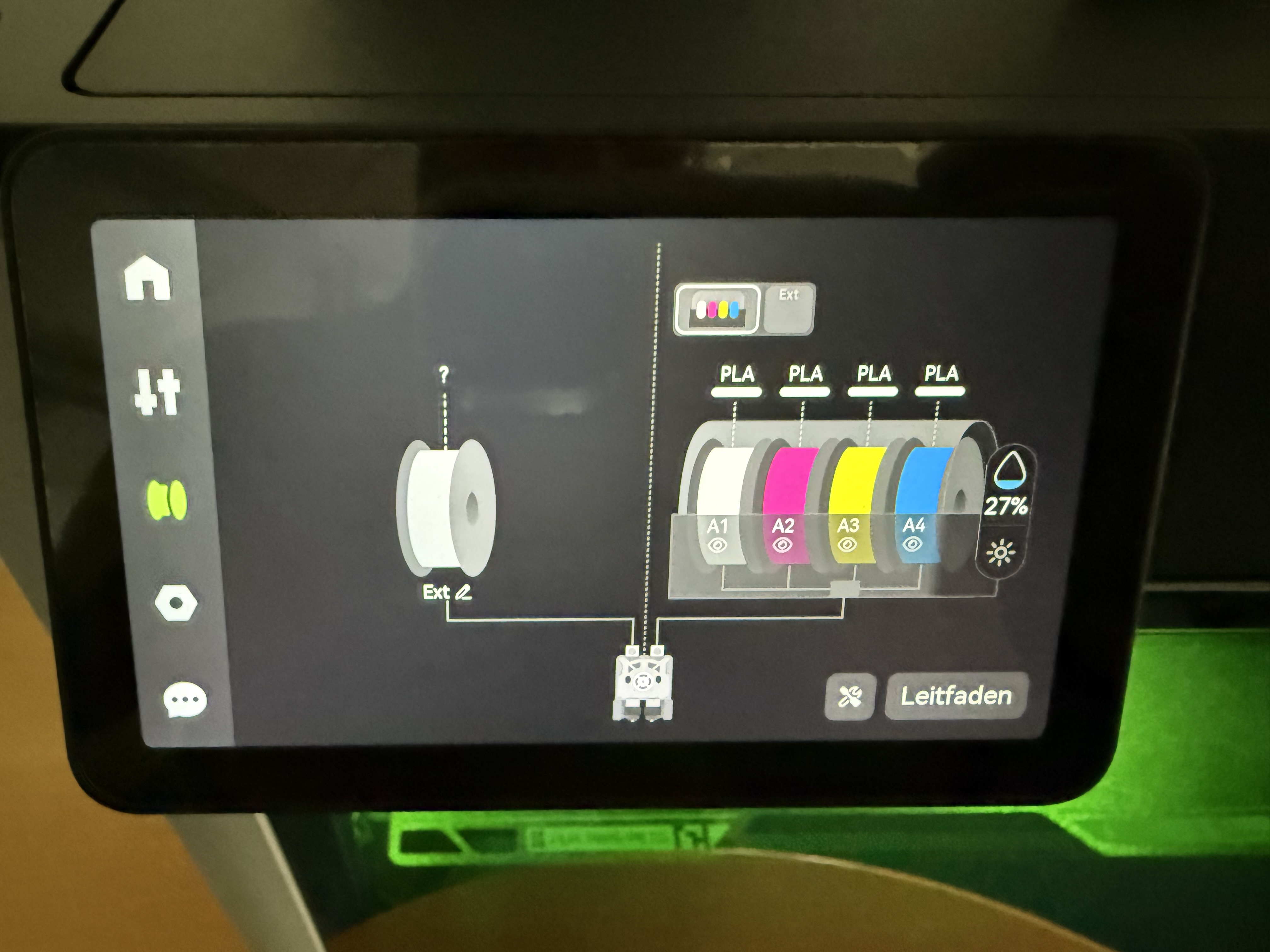 Die Zuordnung der zu druckenden Farben kann direkt auf dem Display des Druckers erfolgen. Die grundlegenden Farbeinstellungen setzt man aber in der Slicing Sofwtare.