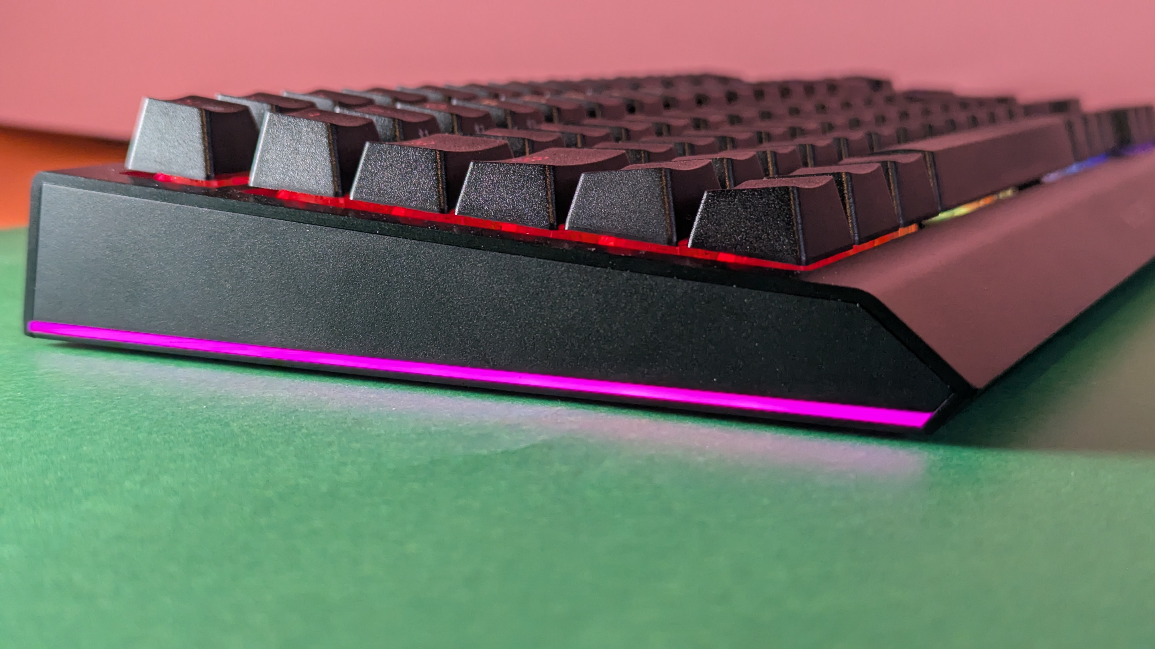 Mit vorgeschmierten taktilen Razer-Orange-Switches der dritten Generation ausgestattet, bietet die Tastatur Tippen mit charakteristischem spürbarem „Bump“. Der macht uns insbesondere beim Schreiben mit der Peripherie Freude. Die taktilen Switches benötigen hier eine Betätigungskraft von 50 g und sind damit etwas schwerer zu aktivieren als lineare. Letztere werden deswegen häufig bei Gaming-Tastaturen bevorzugt. Die Reisedistanz bis zum Auslösepunkt der Razer-Orange-Switches beträgt 2 mm.