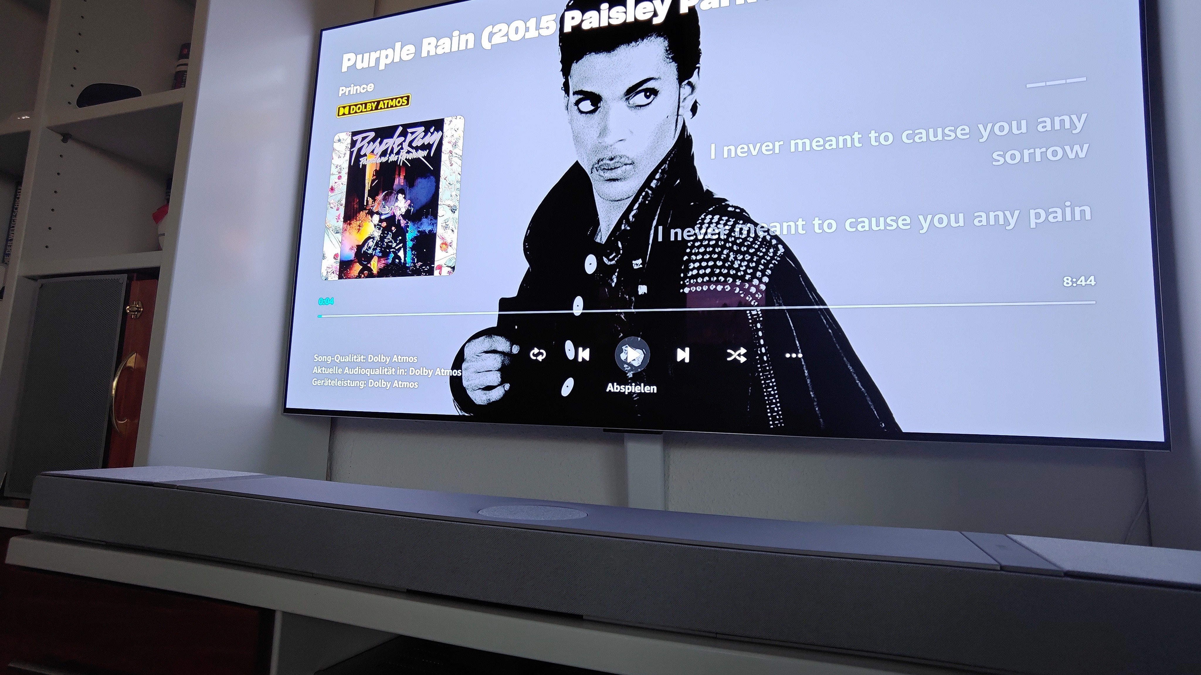 Wir haben den HT-AX7 mit klanggewaltigen Filmen und Serien wie Greyhound – Schlacht im Atlantik, Masters of the Air, Vikings, aber auch eher leiseren Filme wie Der Vorname angesehen und Spiele wie Resident Evil 4 auf dem iPad gespielt. In speziell abgemischtem Material stellt sich ein gewisser Raumklang ein, aber dieser ist weit entfernt von einer Geräuschkulisse mit einem richtigen Surround-System. Wird Musik abgespielt, gefiel uns der Klang ohne die Satelliten sogar besser, was aber nicht Sinn der Sache sein kann.
