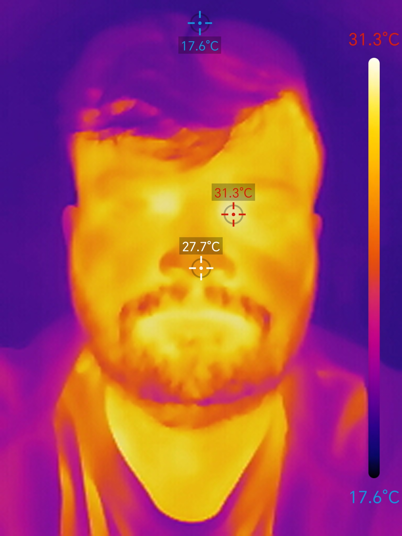 Das Bild einer Wärmebildkamera ist farbig dargestellt – man nennt das auch eine Pseudofarbdarstellung. Da Temperaturen selbst keine Farben haben, hilft die farbige Darstellung dem menschlichen Auge, Unterschiede einfacher zu erkennen. Das erleichtert die schnelle Identifikation von Unterschieden beim Temperaturbereich und Hotspots. Sie ist auch für den Benutzer leichter zu verstehen als eine Darstellung in Graustufen.