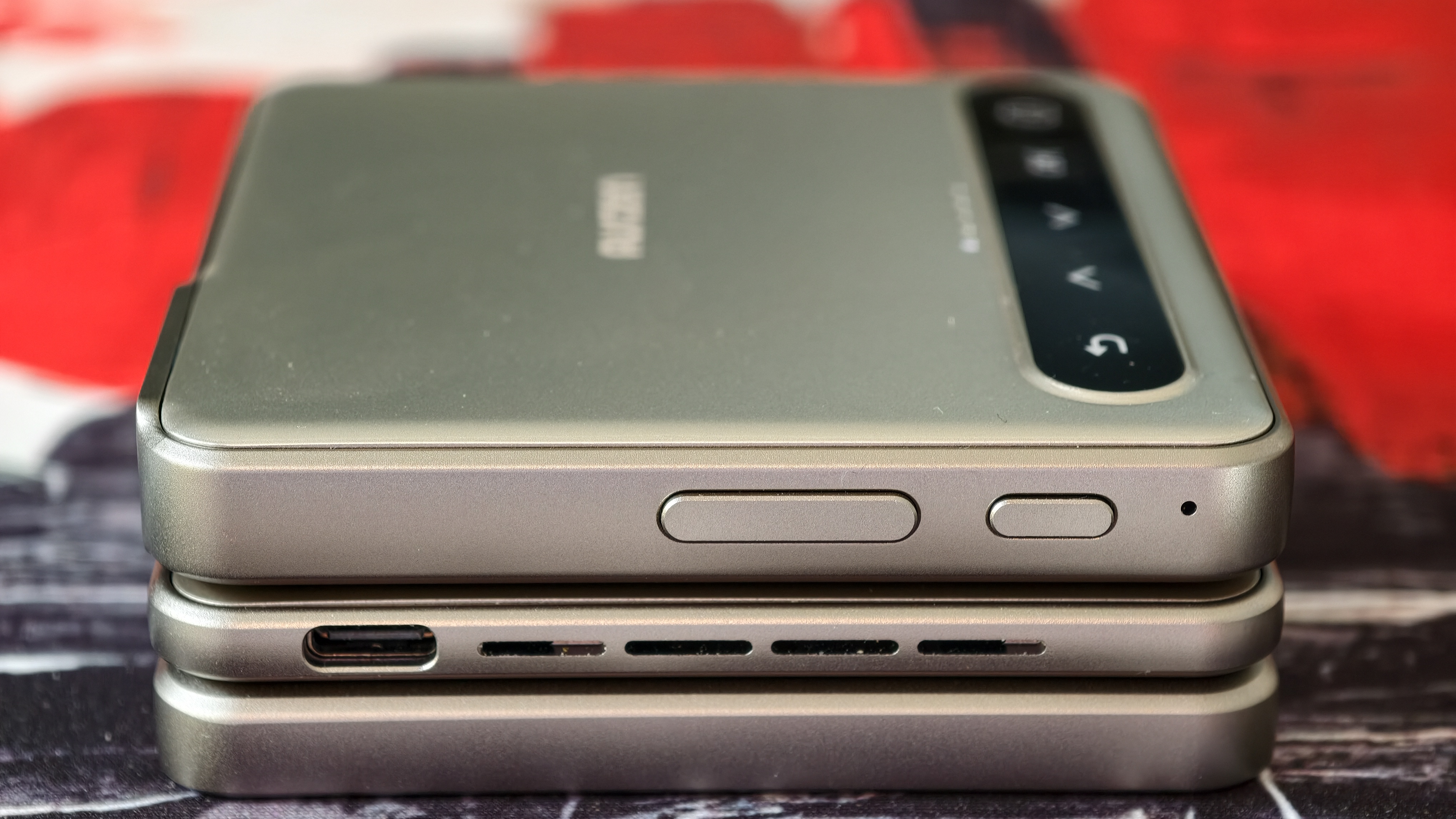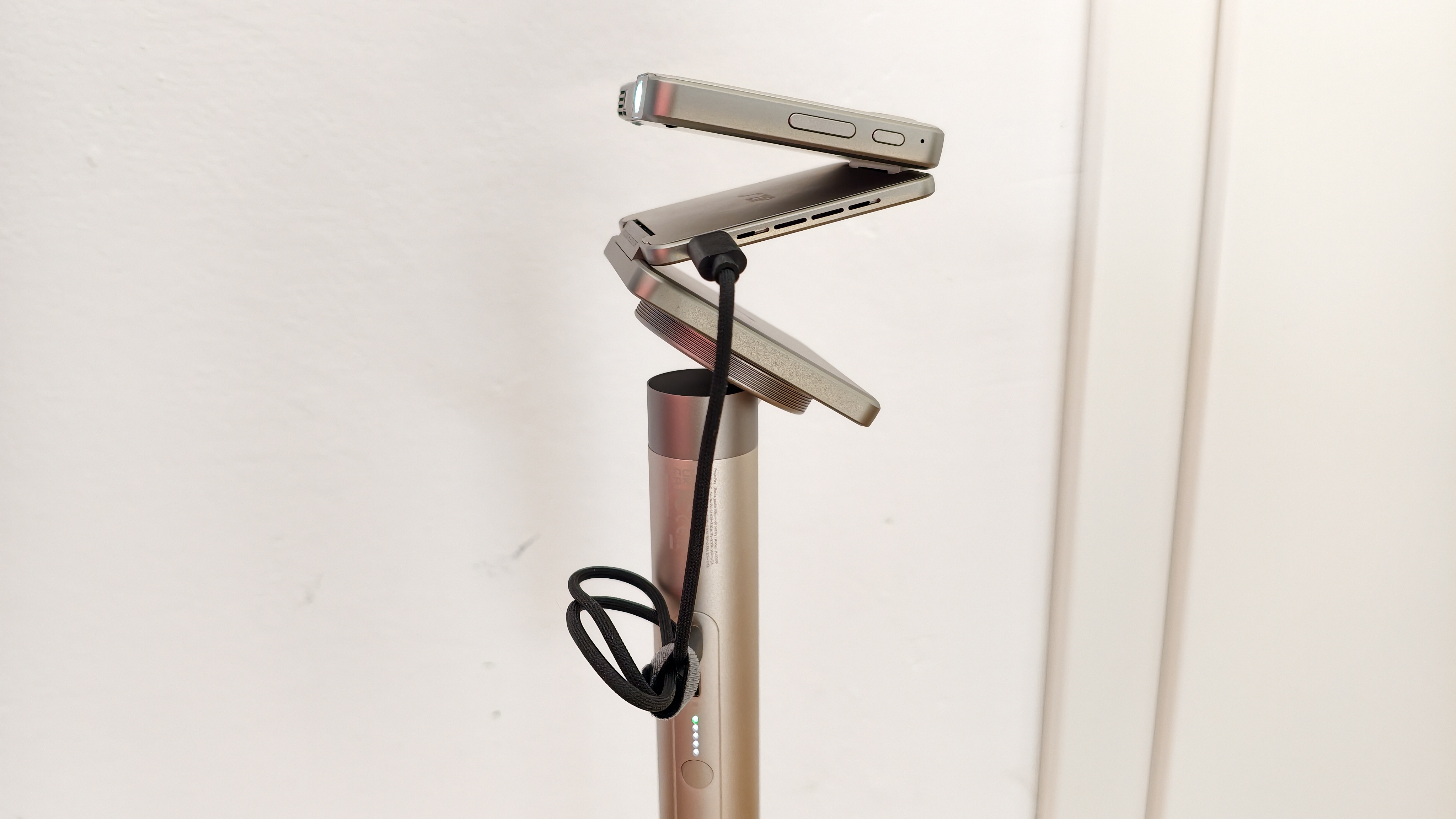 Die beiden straffen Scharniere lassen sich präzise um bis zu 90 Grad öffnen und bilden so einen überraschend stabilen Standfuß. Die Mechanik wirkt robust und langlebig. Mit nur 280 Gramm Gewicht ist der Zip kaum schwerer als einige aktuelle Smartphones und verschwindet problemlos in jeder Hosentasche – auch wenn er dann aufträgt. Die rutschfeste Silikon-Sohle sorgt für sicheren Halt – von glatten Tischen hin zu unebenen Campingplätzen.