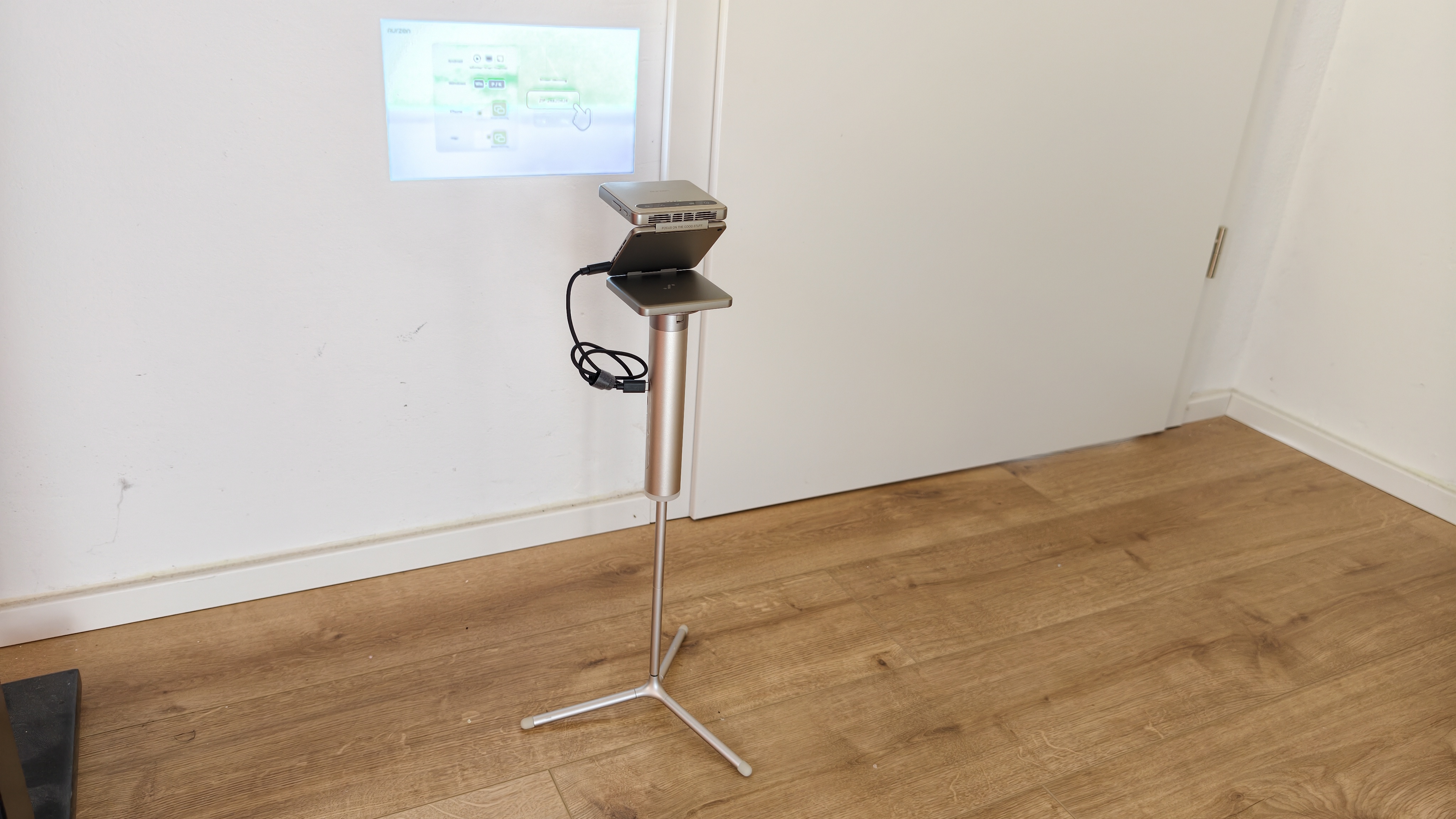 Die technischen Kompromisse sind der extremen Miniaturisierung geschuldet. Wir vermissen einen HDMI-Anschluss am Gerät, ein Betriebssystem mit nativen Apps und eine physische Fernbedienung. Außerdem nervt der hochfrequente Lüfter, und die Helligkeit ist für viele Einsätze zu gering.