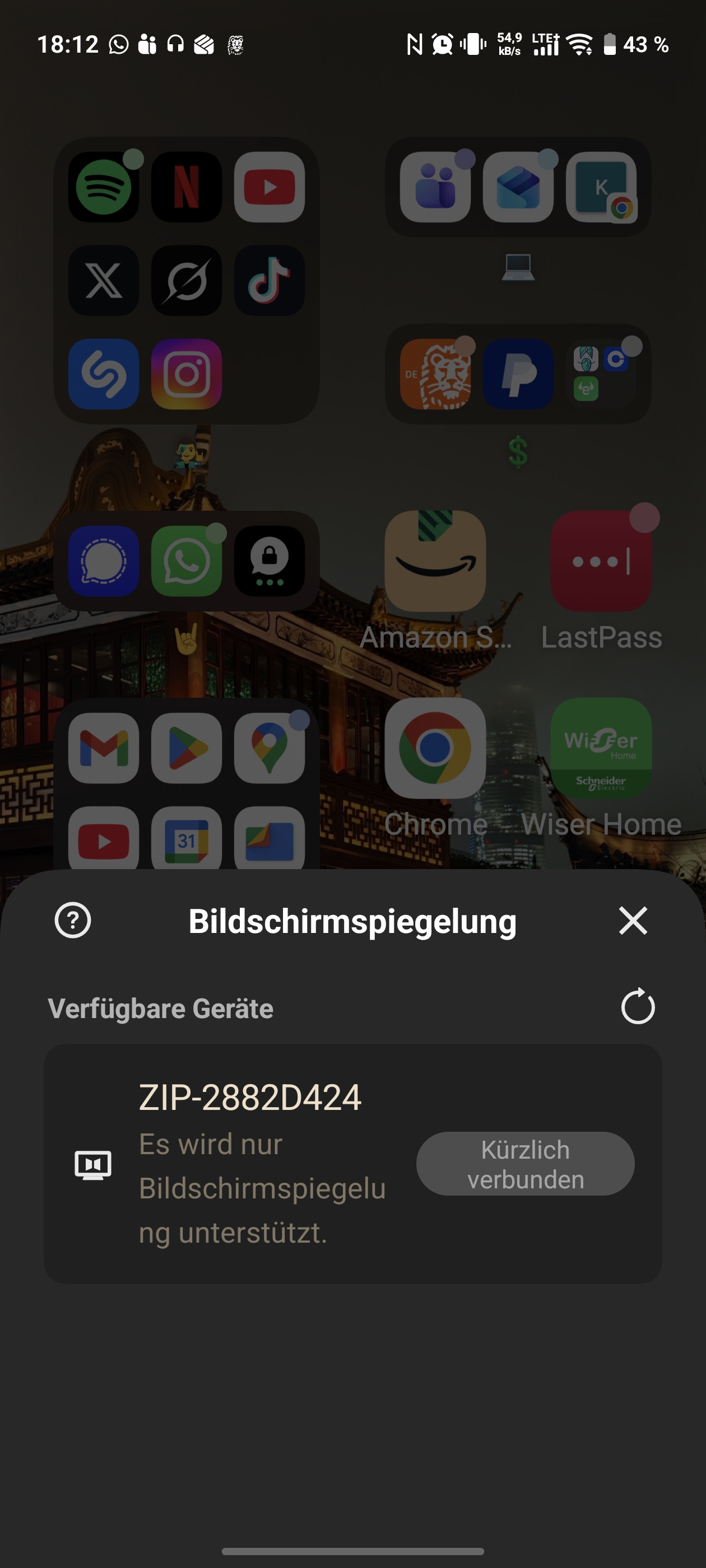 Bluetooth 5.4 sorgt für die Verbindungen zu Smartphones, Tablets und Bluetooth-Boxen, während WLAN das Screen-Mirroring übernimmt. Das System unterstützt Android, iOS, Mac OS und Windows. Eine wichtige Einschränkung: Chromecast und Google-Pixel-Smartphones sind inkompatibel, angeblich funktionieren aber alle anderen Android-Geräte. In unserem Praxistest klappten die Verbindungen mit einem Macbook M1 und einem Vivo X300 Pro reibungslos. Allerdings werden keine DRM-geschützten Inhalte von Netflix, Disney+ und Co. übertragen, Youtube läuft anstandslos. Ein Schwachpunkt zeigt sich bei Mac-Geräten: Hier treten Ruckler auf, die den Filmgenuss beeinträchtigen.