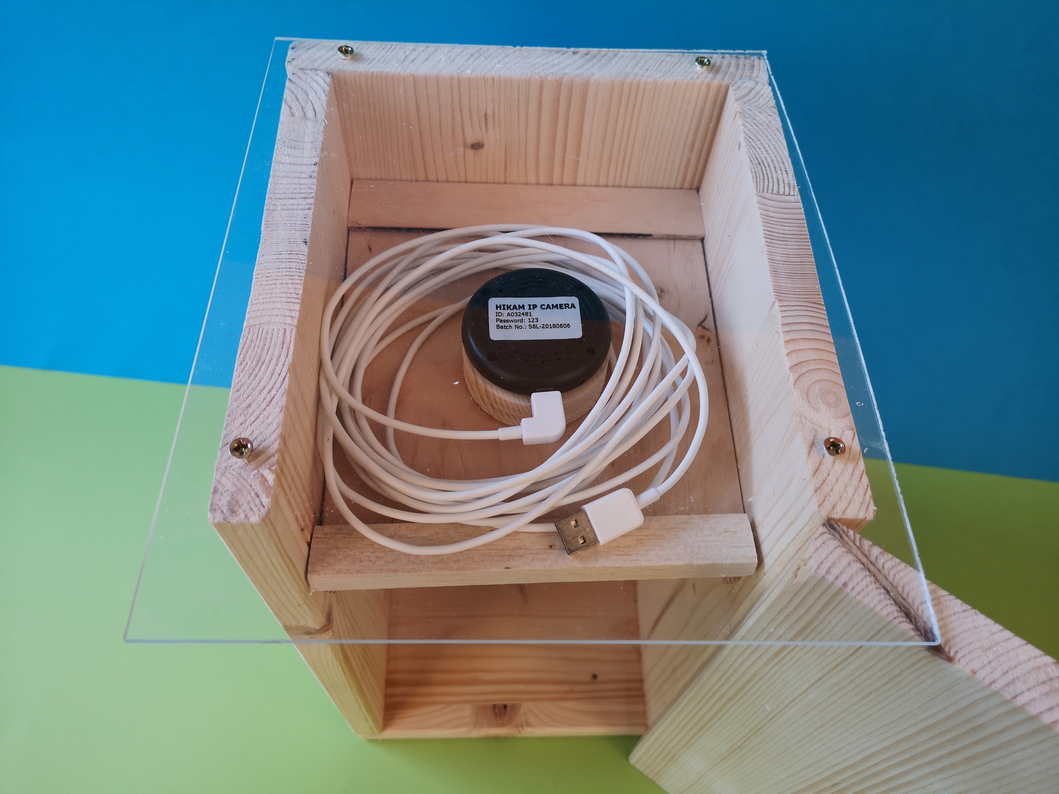 Nistkasten: Die kompakte Kamera passt ins Innere des Kastens.