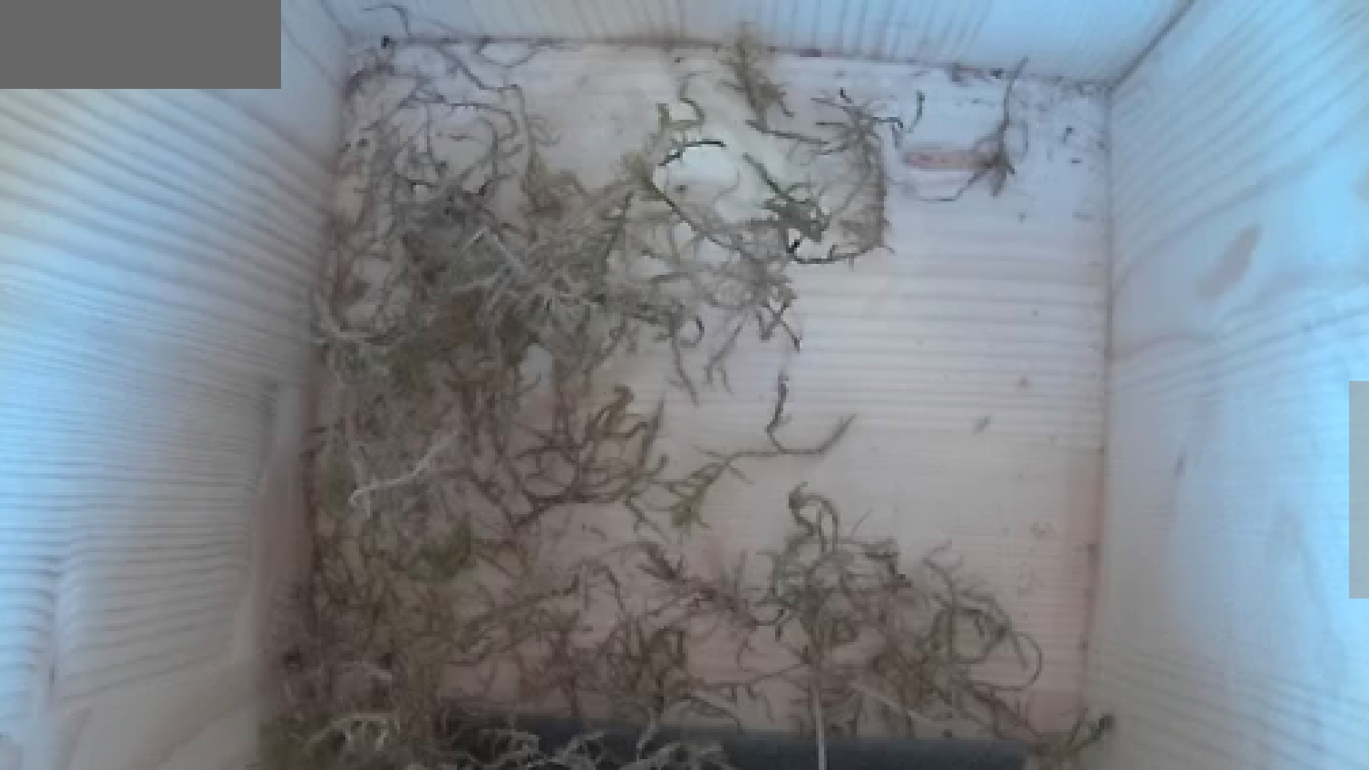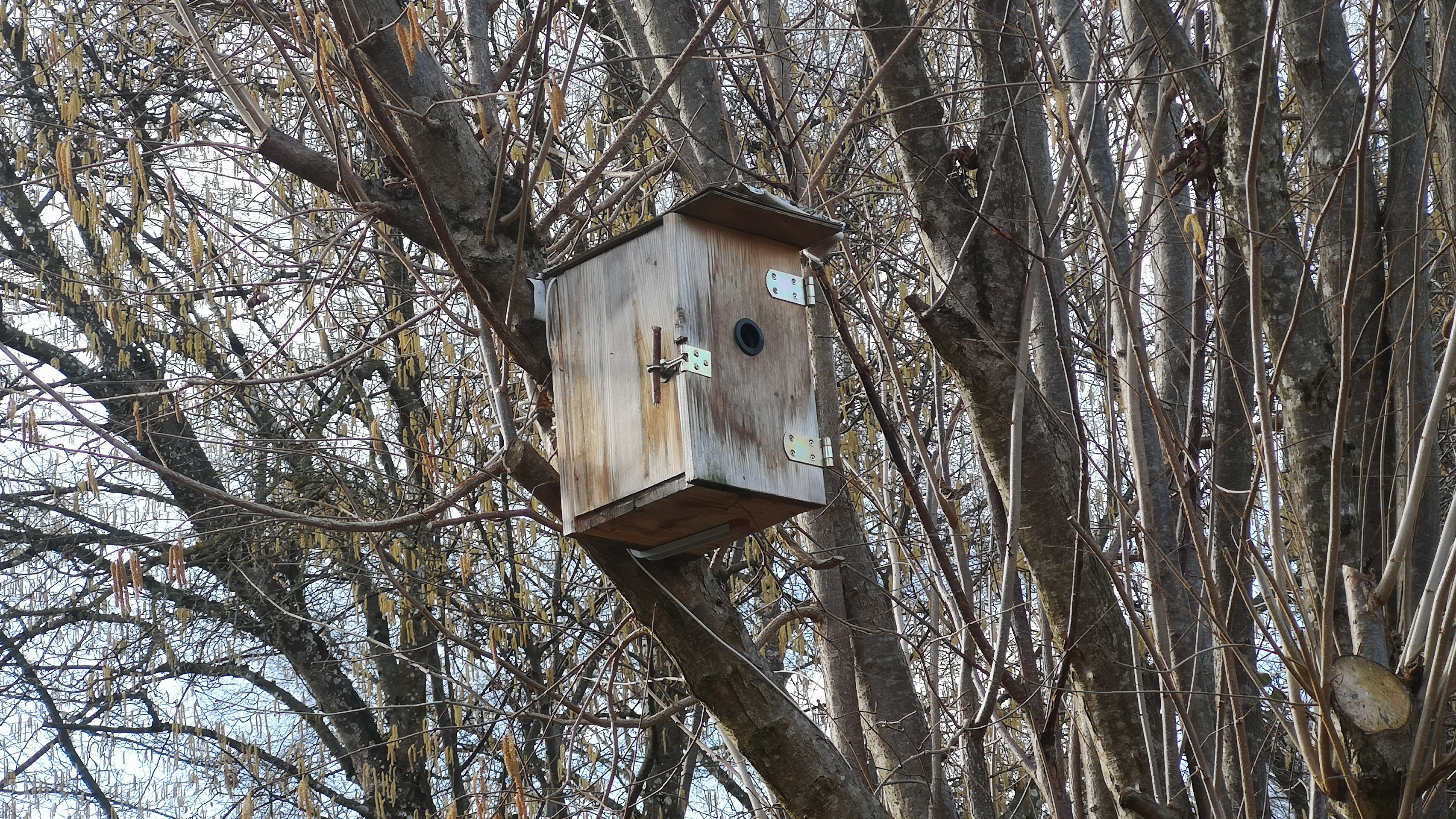 Nistkasten: Hier wurde die Kamera auf dem Nistkasten aufgesetzt und mit einer Kunststoffbox geschützt.