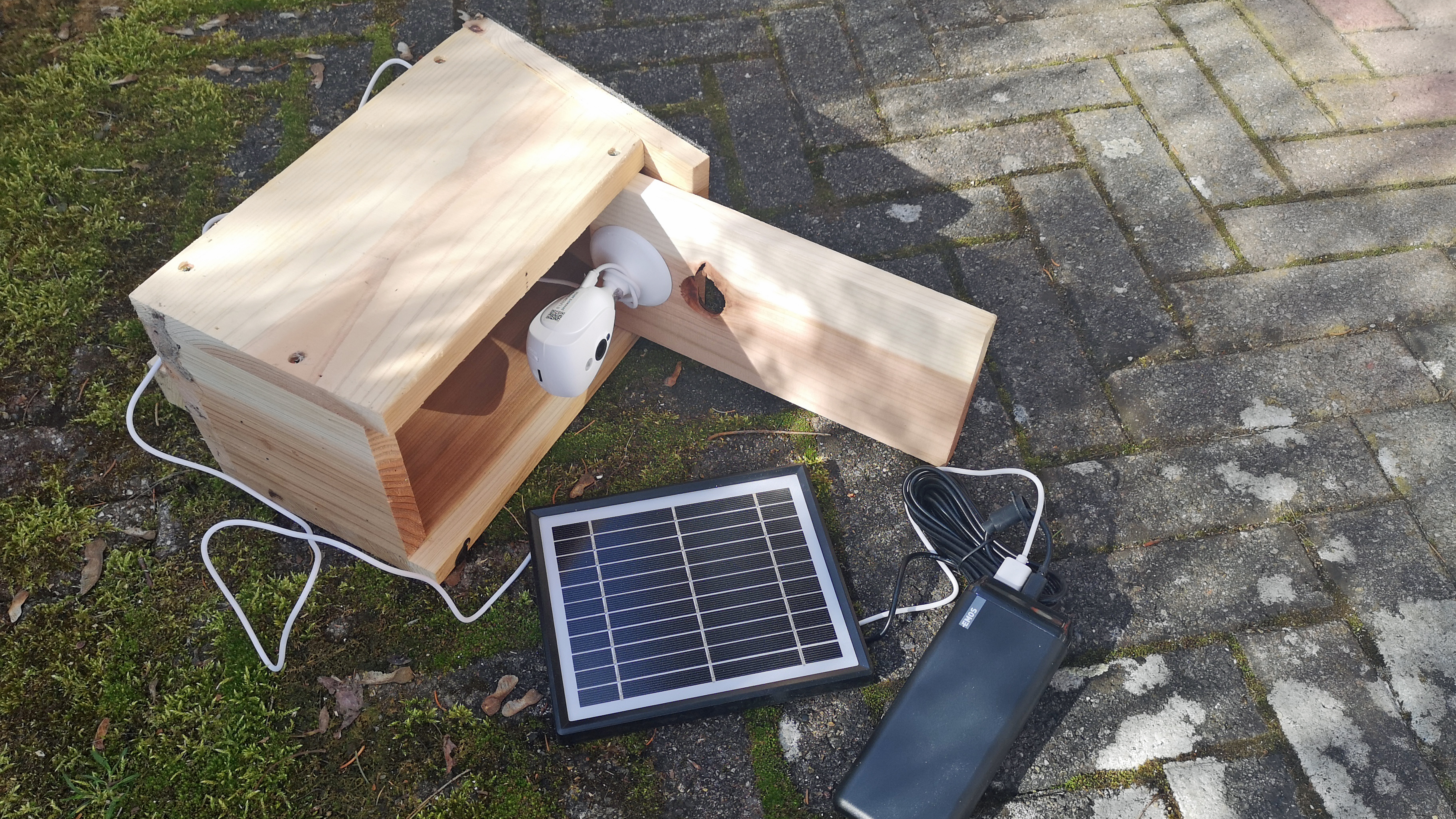 Hier haben wir einen Kasten mit Indoor-Kamera, Pass-Through-Powerbank und Solarmodul ausgestattet. Günstige Solarkameras sind nach unserer Erfahrung aber besser geeignet.