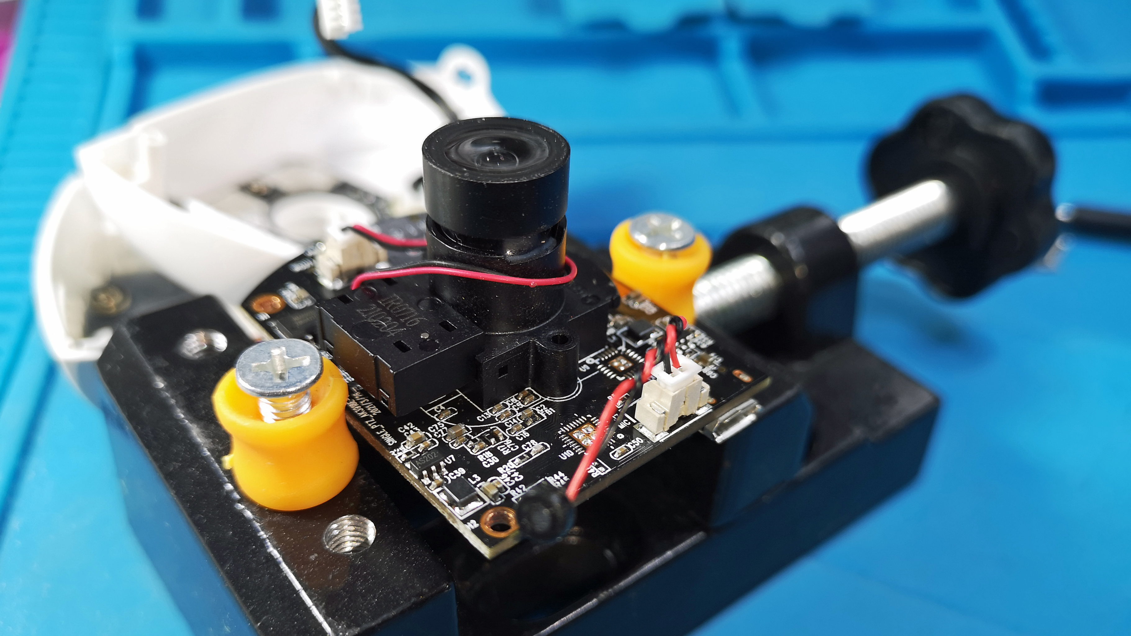 Zum fixieren der Kamera haben wir hier etwas Heißkleber benutzt. Alternativ kann man die Kamera auch auf einem Bettchen lagern, sie festschrauben oder per Magnet befestigen.