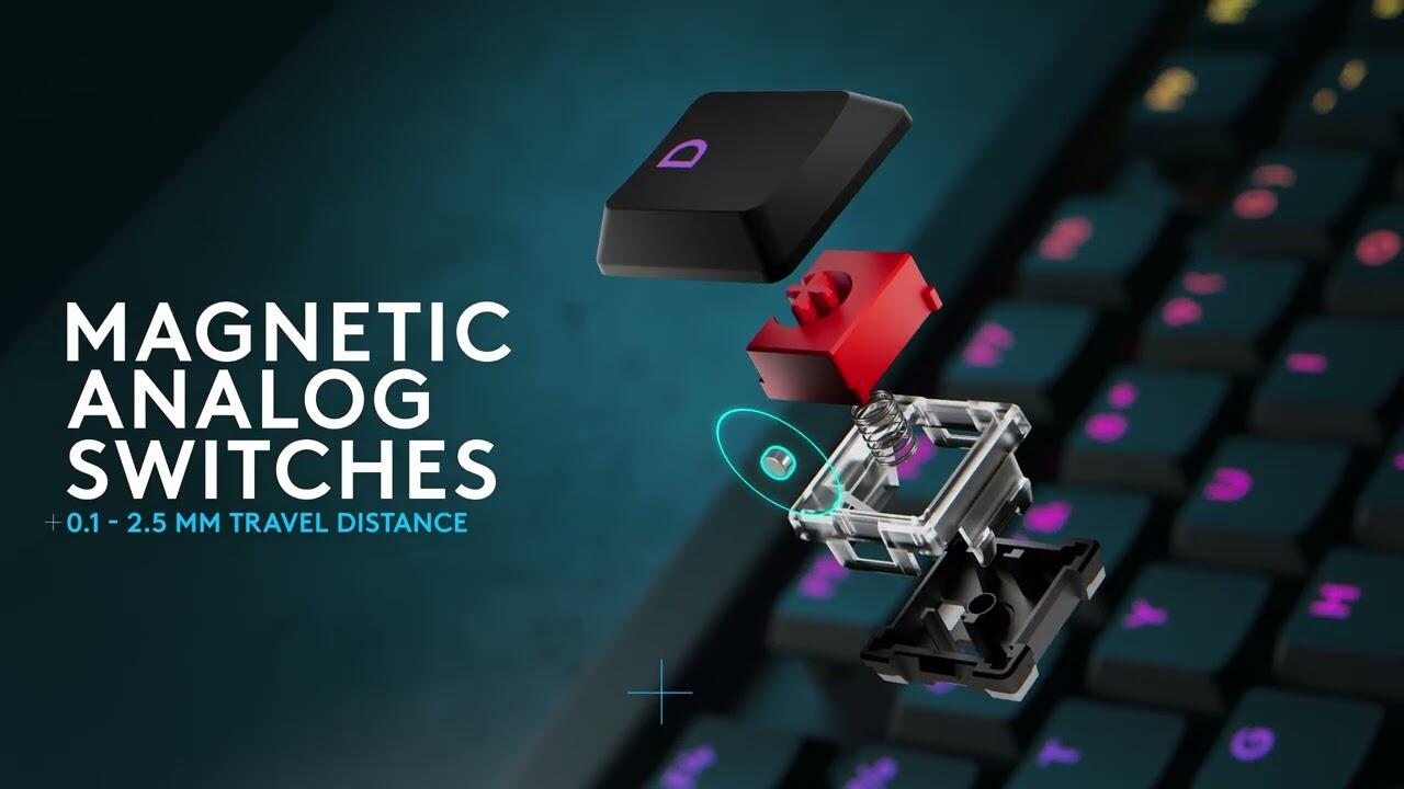 Beim neuen Modell lassen sie sich aber dank Hall-Effekt-Sensoren und Magneten in den Stempeln einstellen, was – mit Ausnahme einer im Mainstream unbekannten NuPhy-Tastatur mit Gateron-Switches – bislang Tastern in großer MX-Bauform vorbehalten war. Kreuzstempel stellen zudem sicher, dass sich die Tastenkappen leicht austauschen lassen.