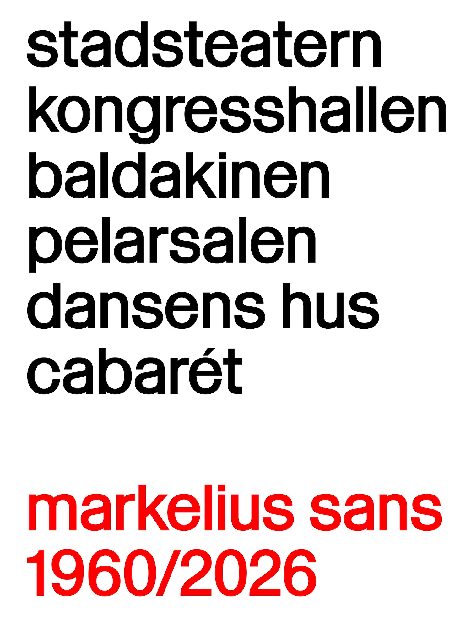 Auf Basis des Leitsystems für das renovierte Folkets Hus am Norra Bantorget in Stockholm, entstand eine Type mit acht Schnitten.