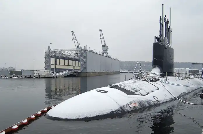 USS Virginia (SSN 774) an einem offensichtlich frostigen Februartag im Jahr 2007 auf der U-Boot-Basis New London in Groton, Connecticut.