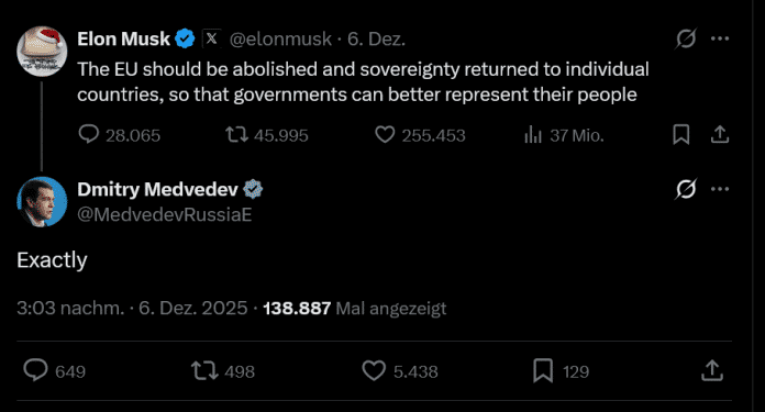 Stunden nach der Bekanntmachung aus Brüssel hat der reichste Mann der Welt dann auf seinem Kurznachrichtendienst gefordert, dass die EU abgeschafft „und Souveränität zu den einzelnen Staaten zurückübertragen“ werden soll. Zustimmung dazu gab es unmittelbar vom ehemaligen russischen Präsidenten und Putin-Vertrauten Dmitri Medwedew. Harsche Kritik kam außerdem von US-Außenminister Marco Rubio, der die Strafe als „Angriff auf die amerikanischen Menschen“ bezeichnet hat. Sein Parteikollege, Senator Ted Cruz, hat deshalb sogar Sanktionen gegen die EU gefordert, „bis diese Farce rückgängig gemacht wurde“.